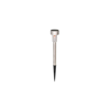 Outdoor solar light designed to be inserted into the ground, featuring an integrated LED light source and battery. The luminaire is made of black plastic, stands 30 cm tall, and includes a white plastic diffuser. It has an IP44 protection rating against water splashes and dust. The luminaire does not operate during daylight hours.