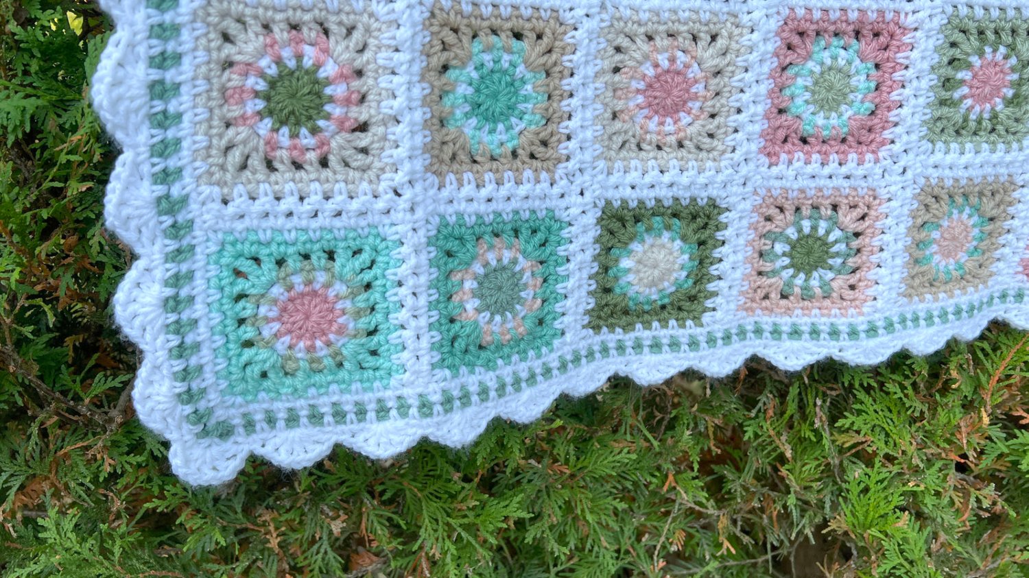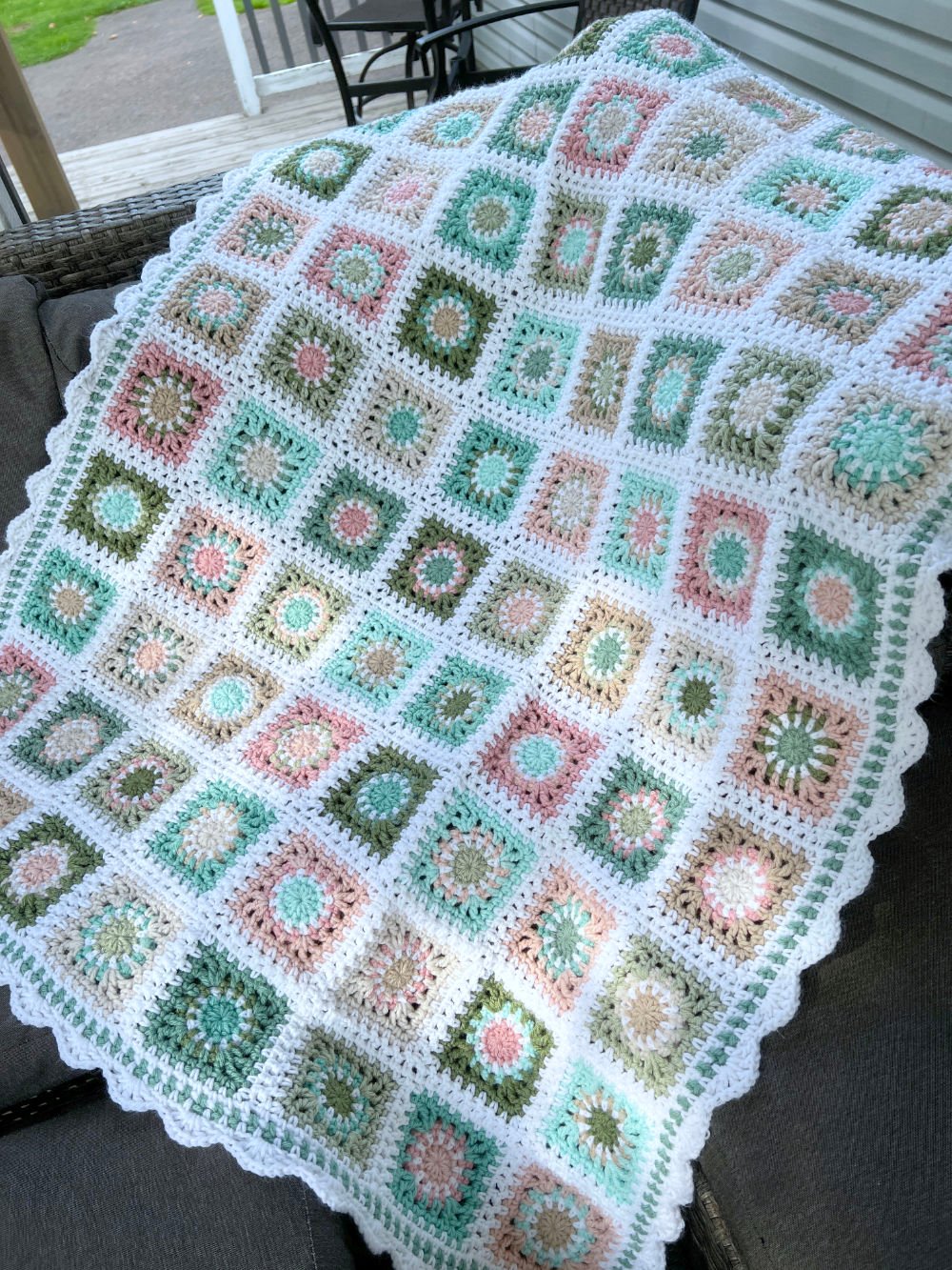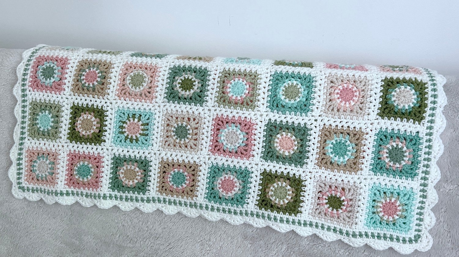 the sample blanket pictured is worked with 10 colours total,