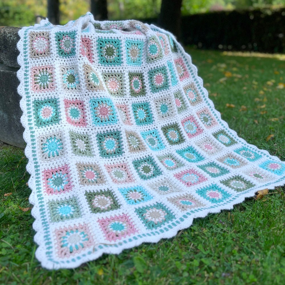 This PDF Blanket Pattern is a full 23 pages of written instructions for the squares and join method, and includes yarn colour information, full detailed diagrams and colour charts for this specific colour way.