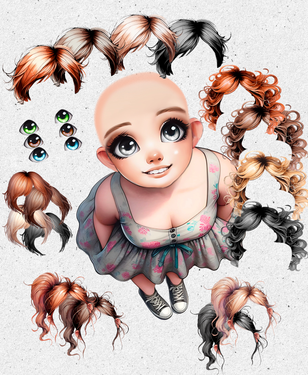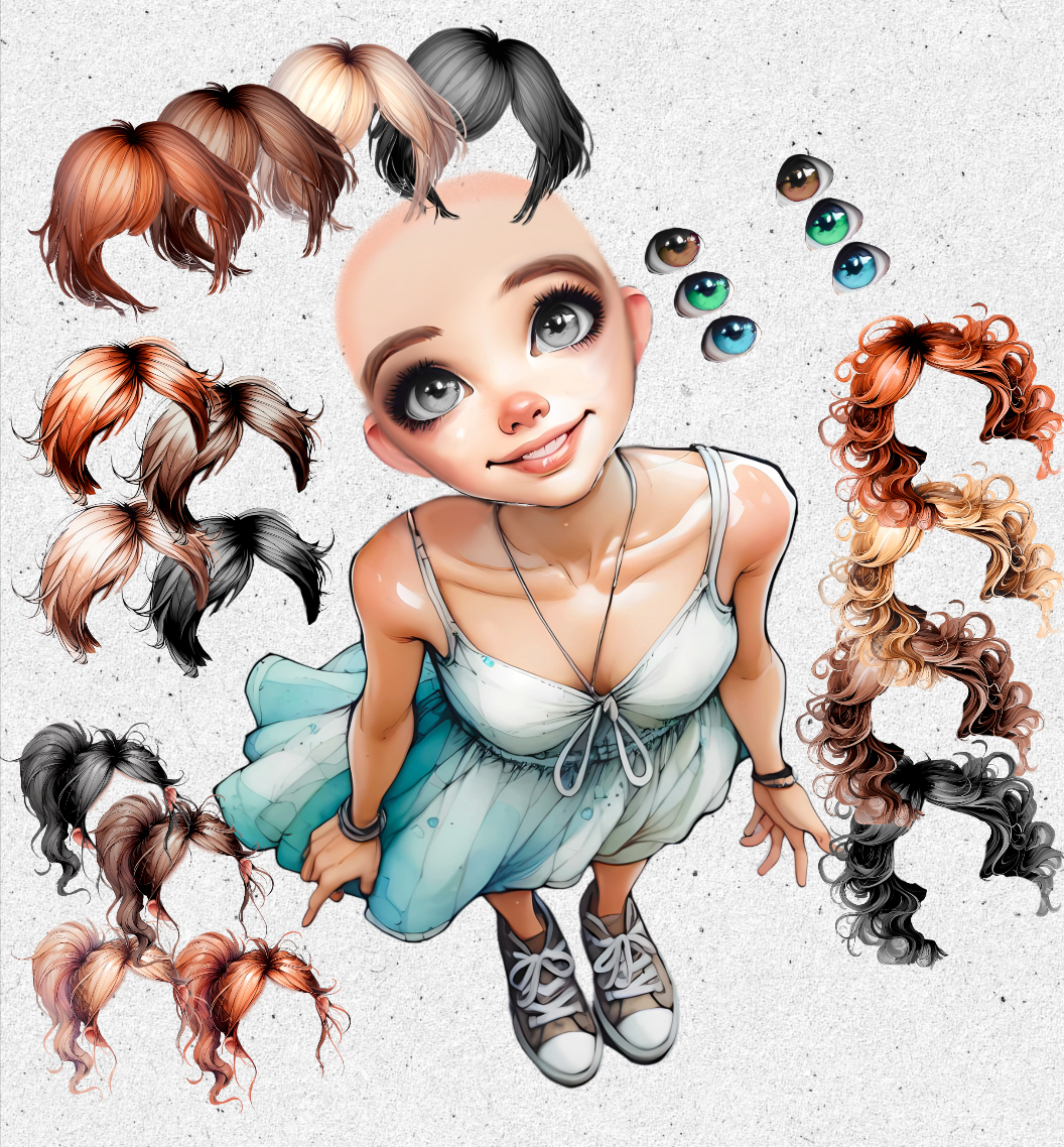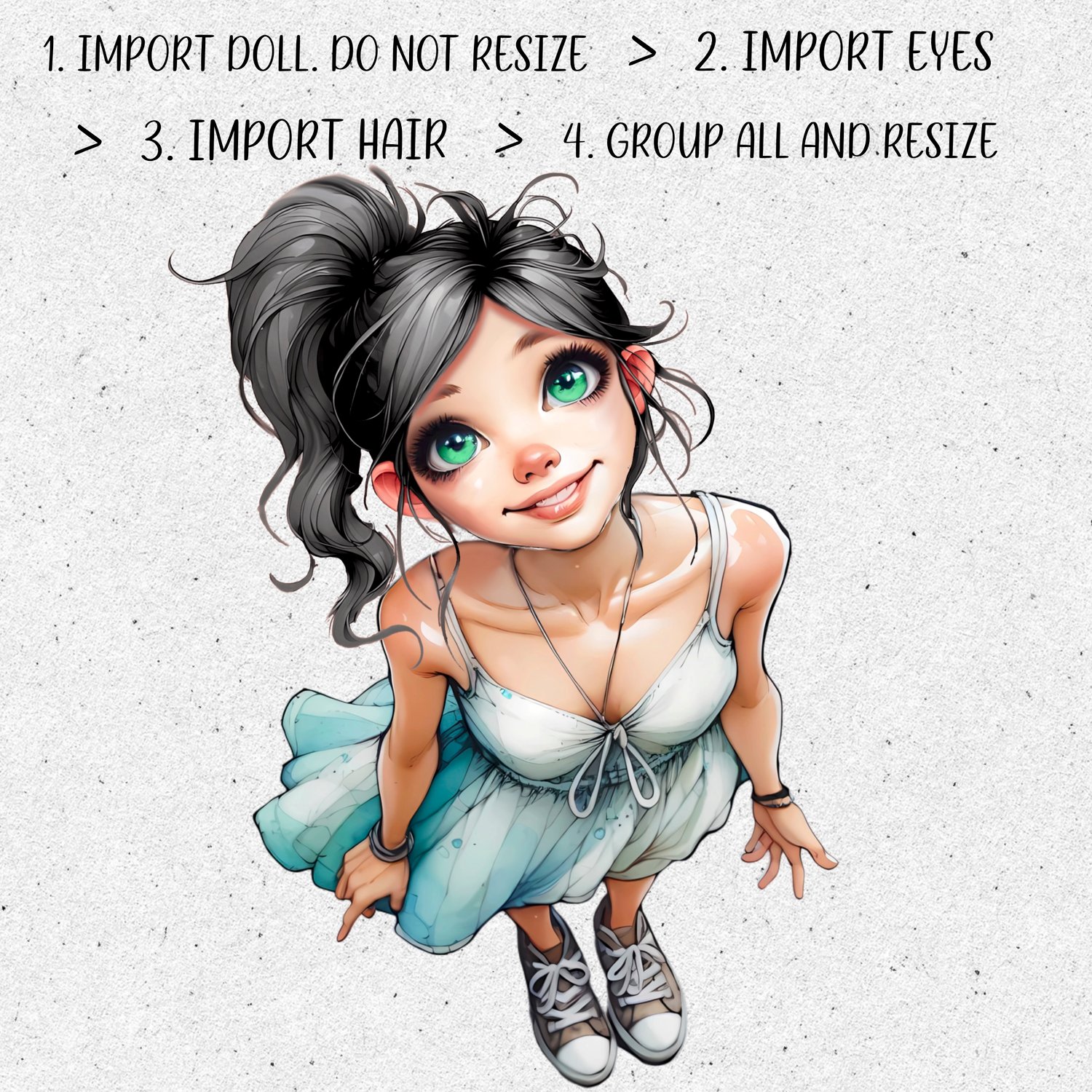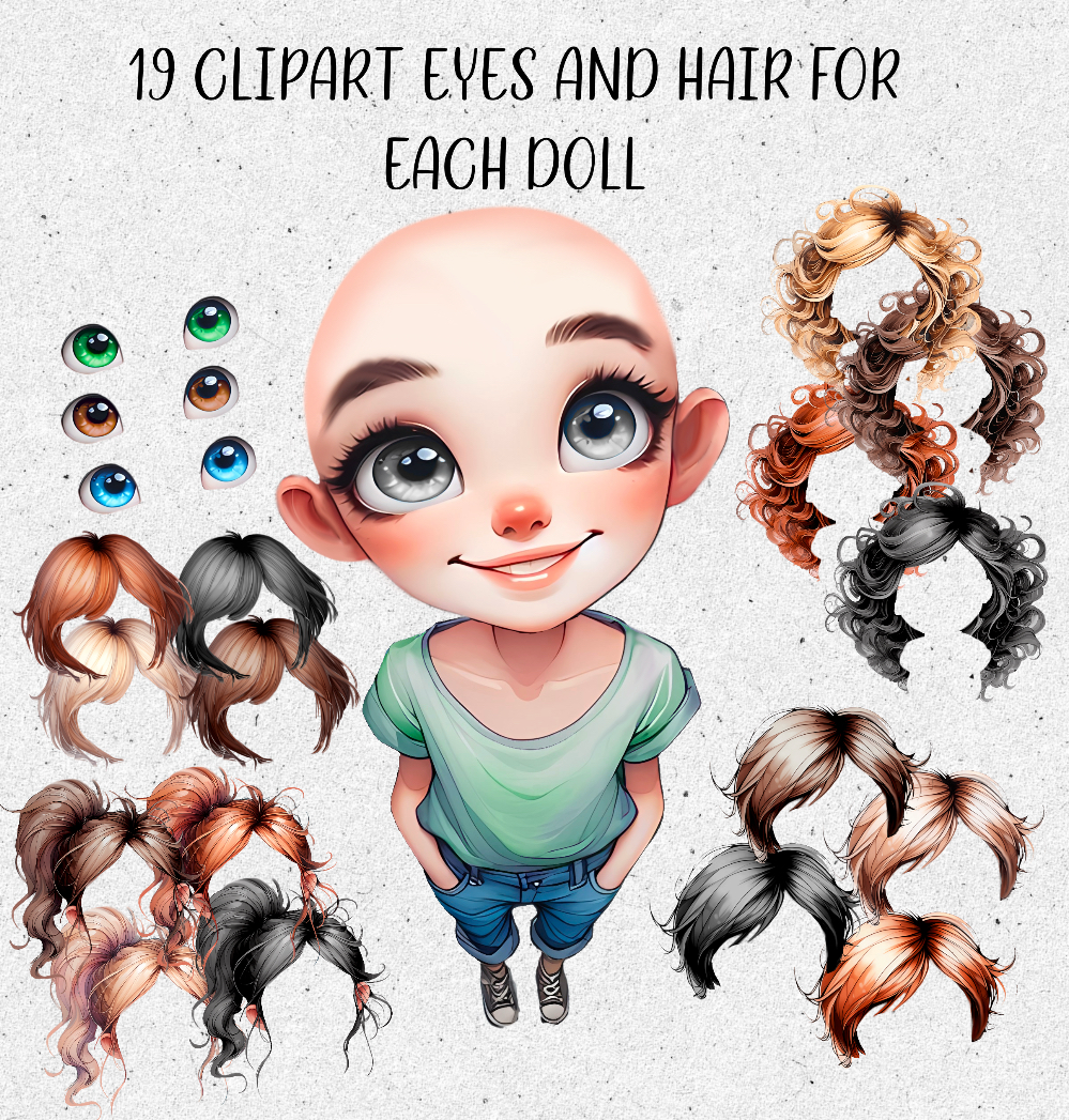 Besties, hen girls, soul sisters, Chibi dolls, 100 PNGs, clipart, hair, eye options, sublimation, print, DTF, UVDTF. Please see pictures for more information on individual models.