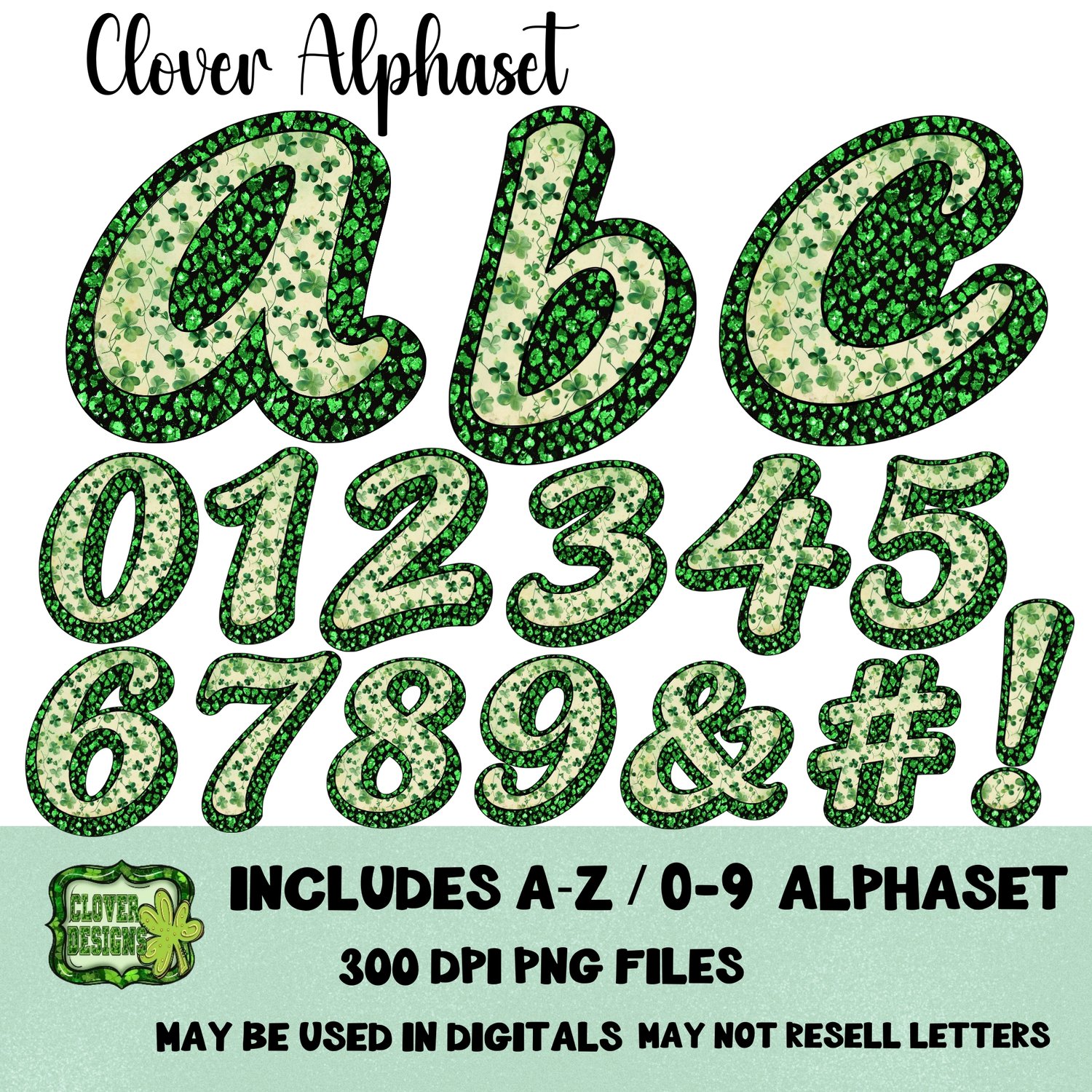 Clover Alphaset Pngs 4 flower clipart pieces included