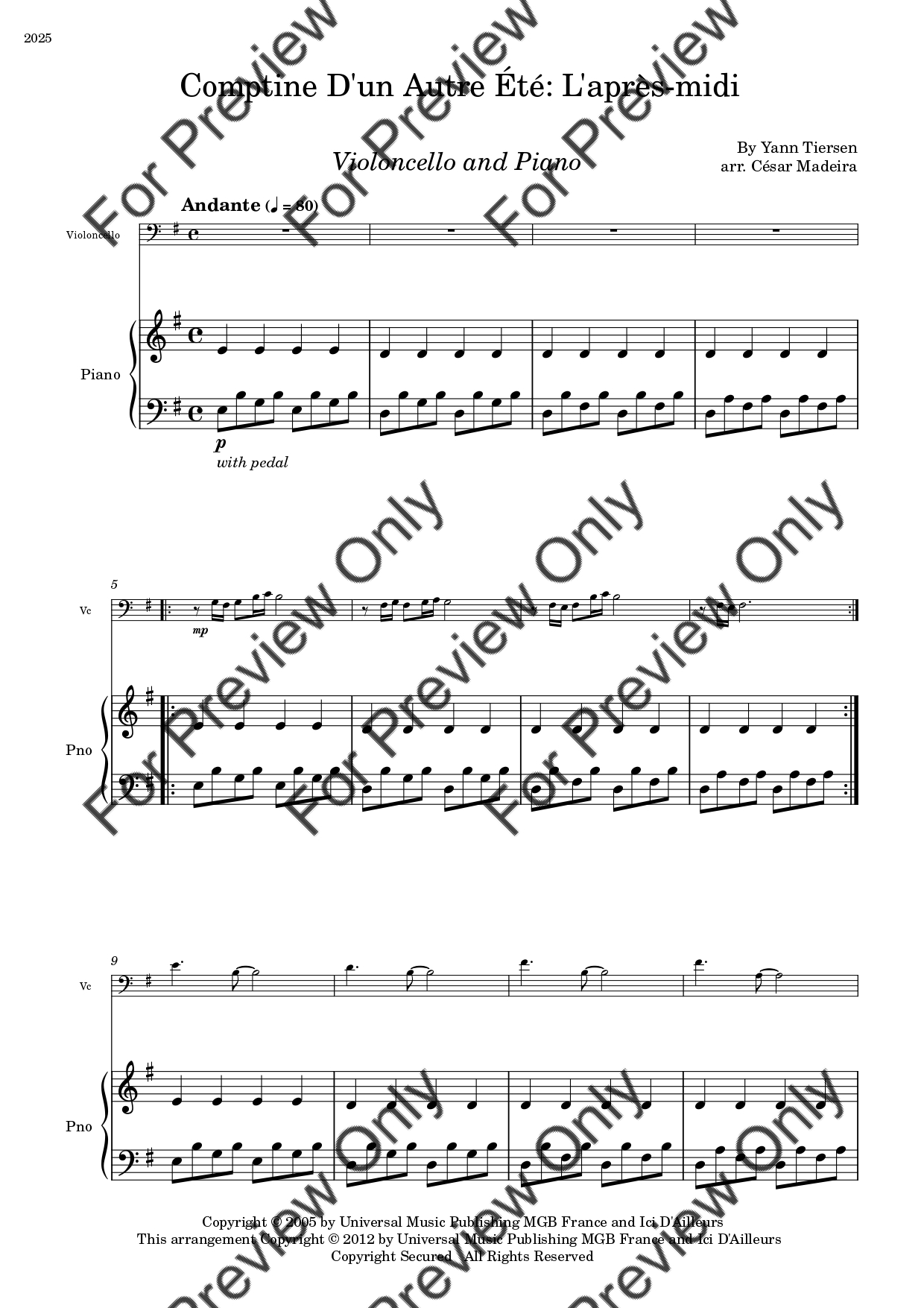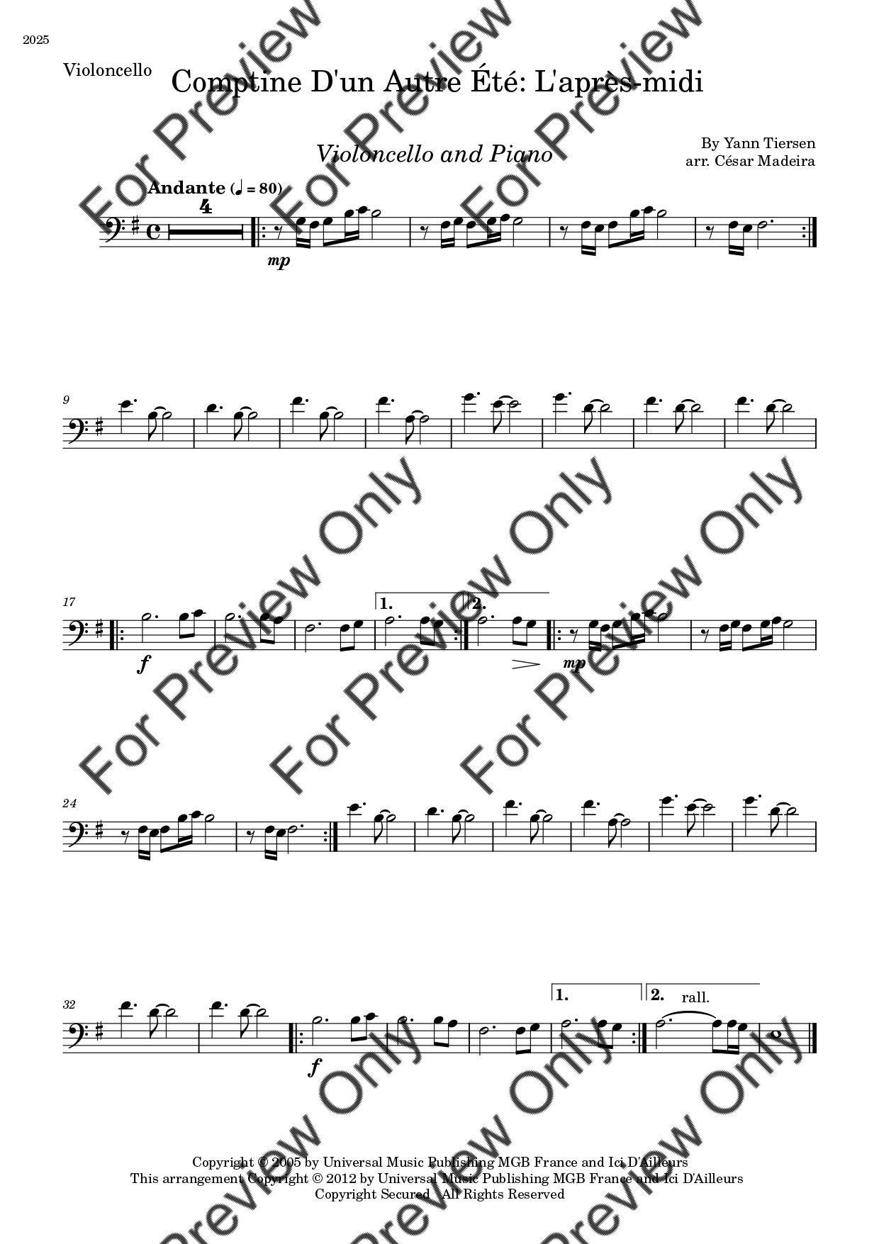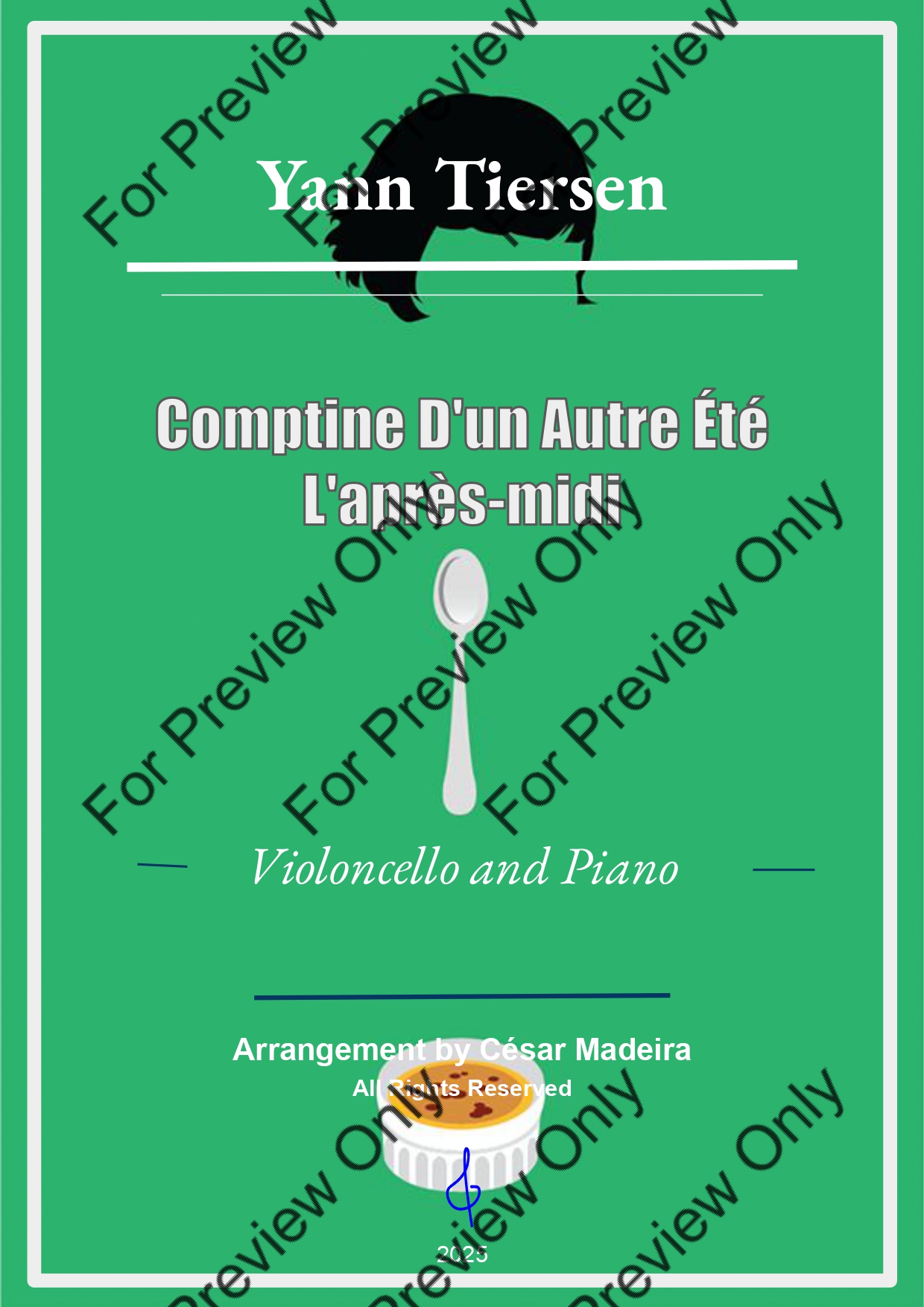 Comptine D'un Autre Été: L'après-midi by Yann Tiersen. Arrangement for Violoncello and Piano. With Full Score and Individual Parts. Have fun!