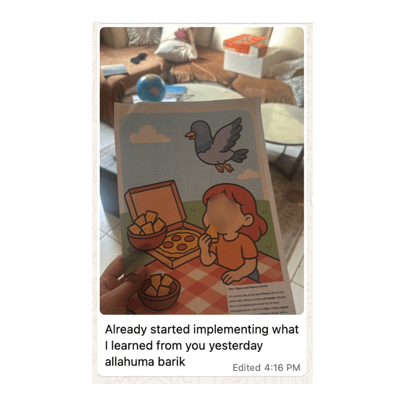 You can finally sit together reading Islamic books and hear your child say, “I love reading.” They’re motivated, excited, and building a beautiful relationship with books because you finally know exactly when and how to support them. You’re guided to resources that are highly effective, bring real results, and don’t rely on music, all while being supported by like-minded Muslim mums on the same journey.