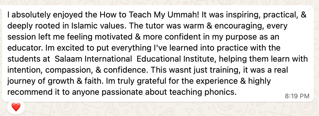 Ukhti, you don't have to figure this out alone anymore. I've spent 14 years in classrooms across the UK and the Middle East. I built Islamic Phonics for one reason: so that every Muslim child gets to be the reader and writer they deserve, in shā' Allāh. Your child's success is my mission. Let's make it happen together. 🌙