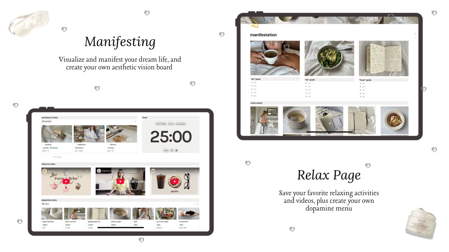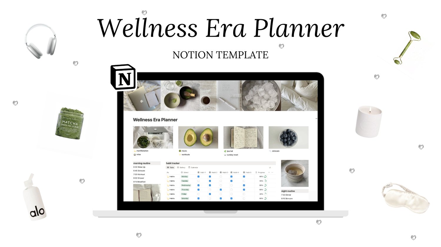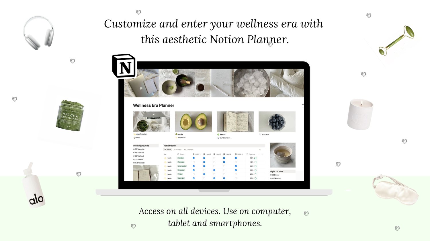 From planning your meals and workouts to journaling and manifesting your dream life, everything you need to support your wellness journey is in one aesthetic dashboard.🫧