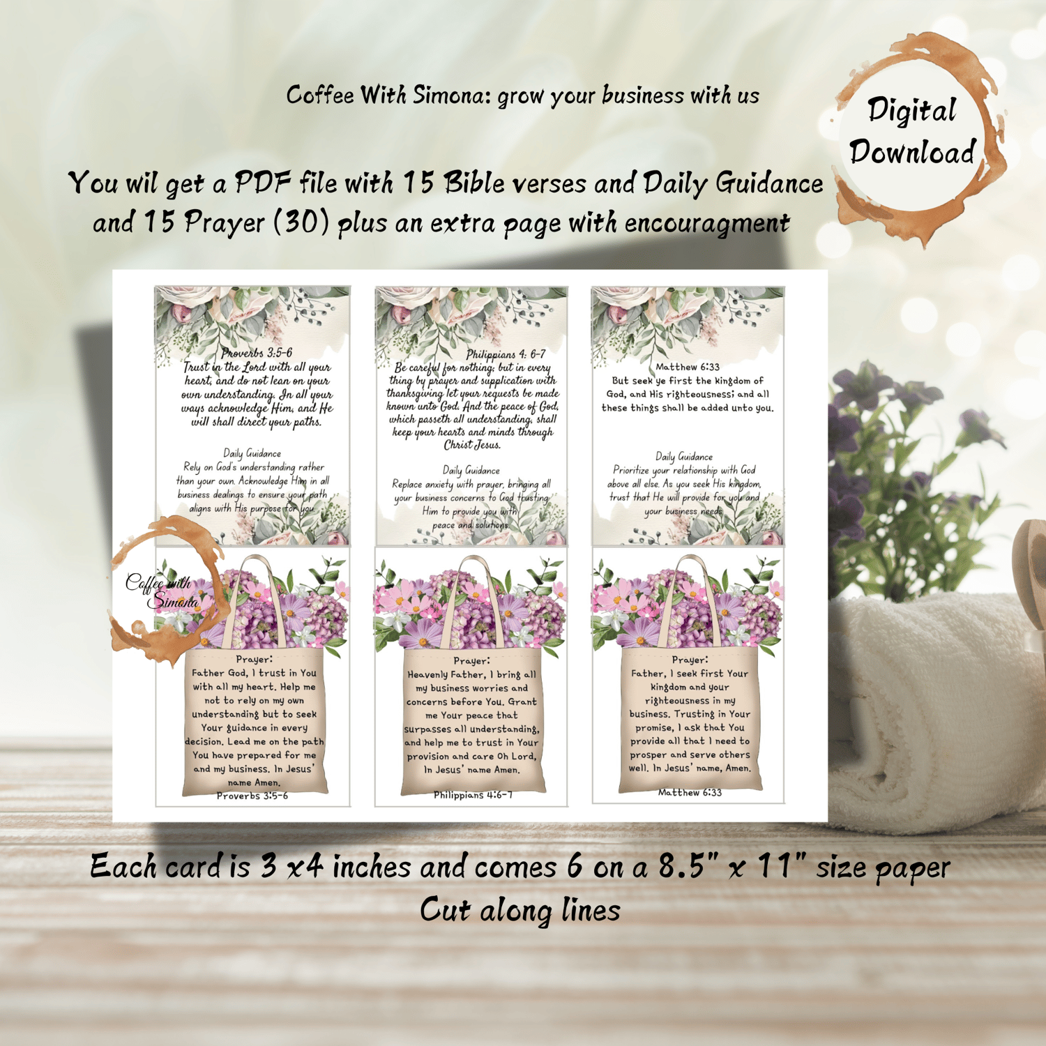 -You will get a PDF file with 15 Bible verses and Daily Guidance and 15 Prayer (30) plus an extra page with encouragement