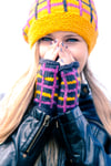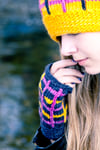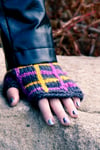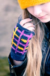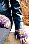 Hail, Tartania! Plaid hands are glad hands, and these tartan fingerless mitts make the technique easy. The horizontal colors are knit as stripes using one color at a time per row in a wide rib, then the vertical stripes are added at the end with a crochet hook in the purl columns; no crochet skills are needed.