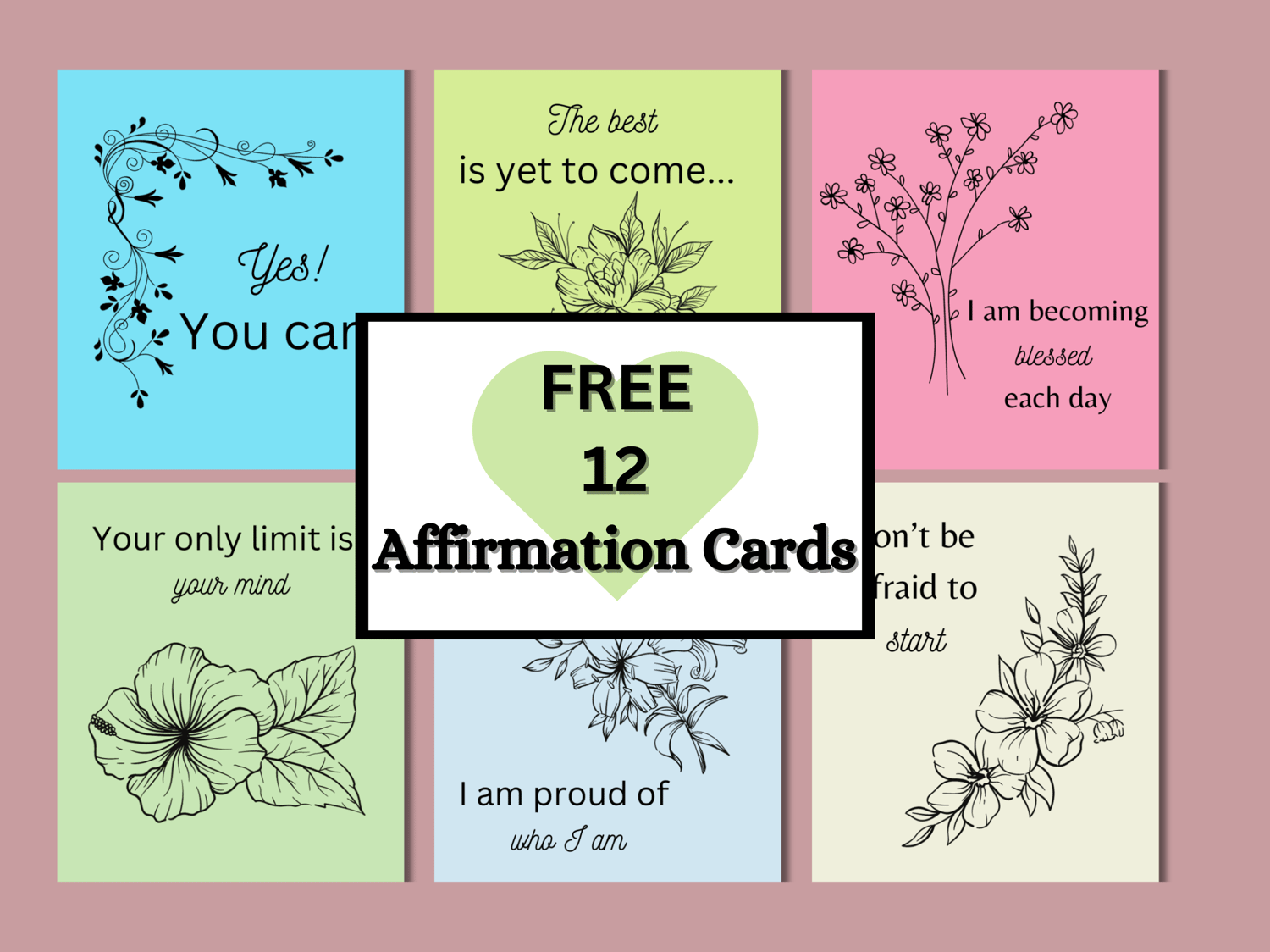 12 Affirmation Cards Digital Download, Positive Quotes - Printable Gift.
