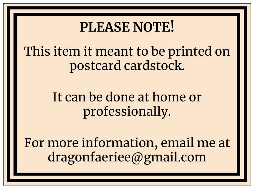 You will receive 1 PDF file with a 4 x 6 post card to print.