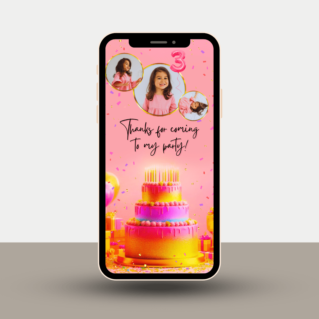 Make your birthday announcement stand out with this stylish Pink & Gold thank you, designed specifically for phones! Perfect for sharing as a WhatsApp Status, Instagram Story, or sending directly to friends and family.