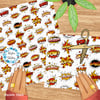 Colorful comic bubble bursts in red, orange and yellow.