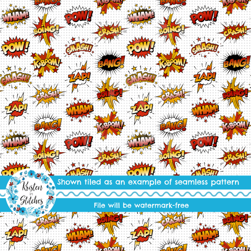 Superhero Comic Strip Bursts Seamless Pattern, Crash Boom Pow