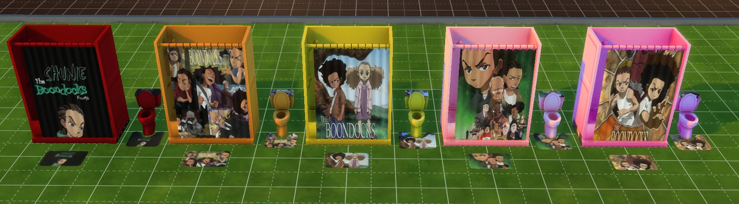 Elevate your Sims 4 experience with the Boondocks Bathroom Set, a vibrant collection that brings a splash of culture and style to your virtual home. This set features beautifully designed fixtures and decor that reflect the essence of Black culture, making your Sims' bathroom not just functional but a true expression of identity. With its eye-catching colors and unique patterns, your Sims will love getting ready in a space that feels like a celebration of heritage. Transform their daily routine into a stylish ritual and let your creativity shine!