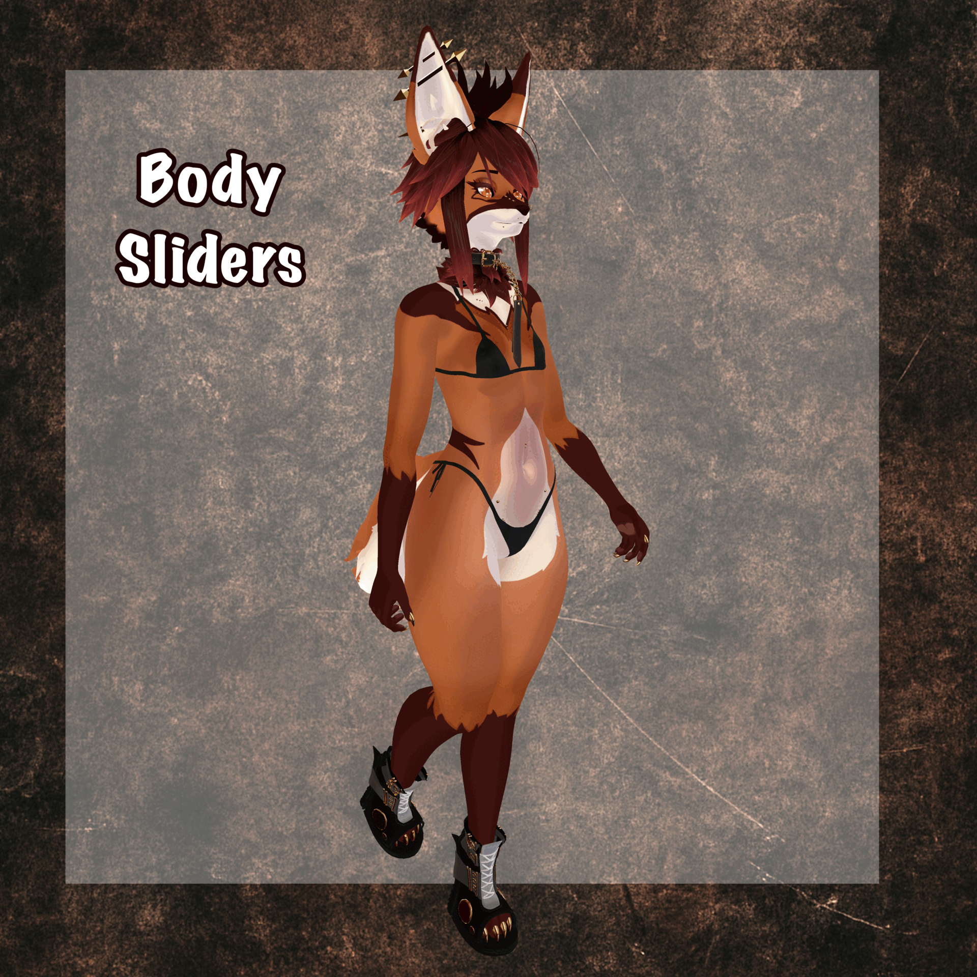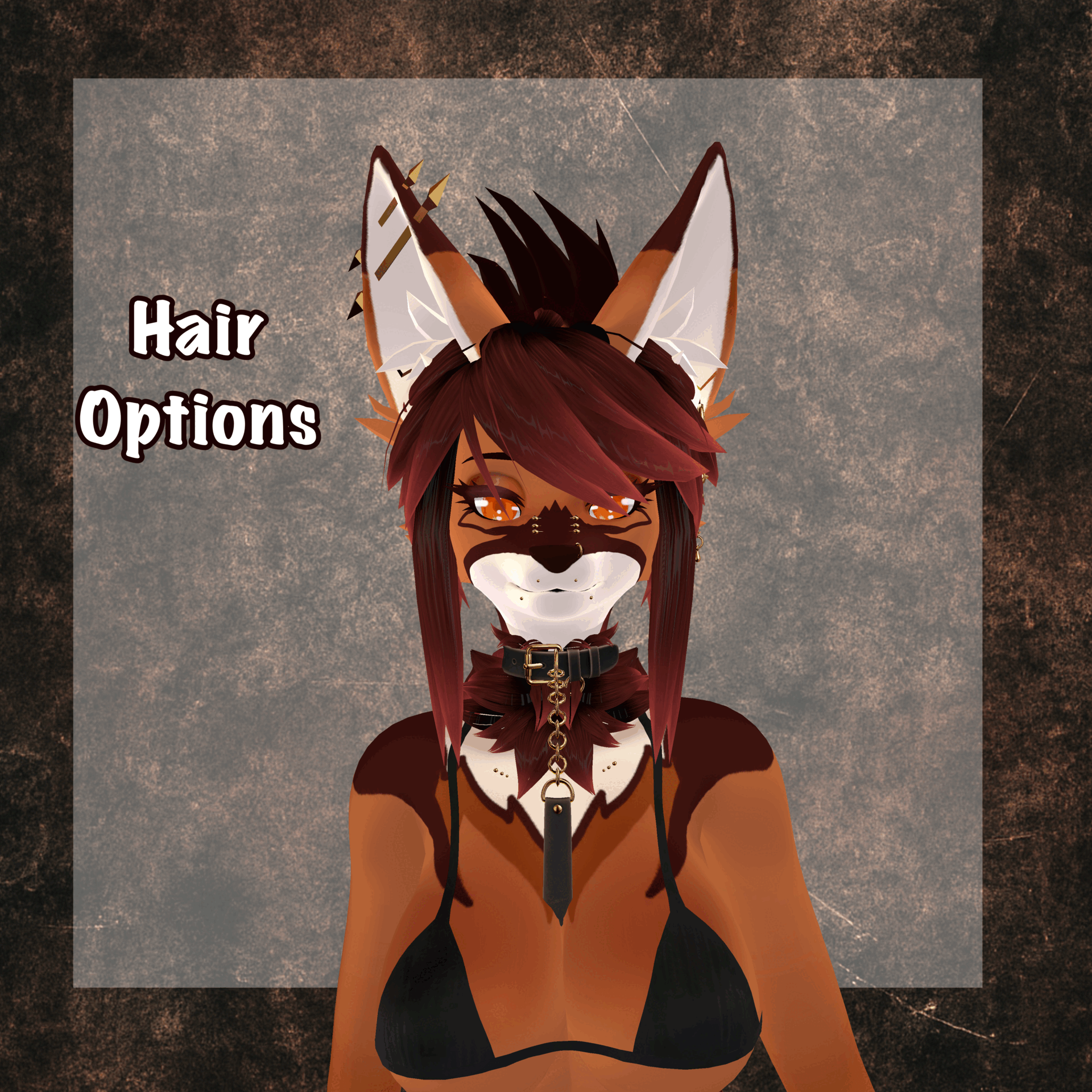 - Body Fluff, Face and Ear piercings, Collar and Leash