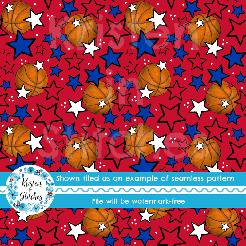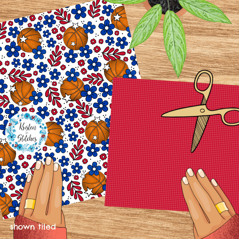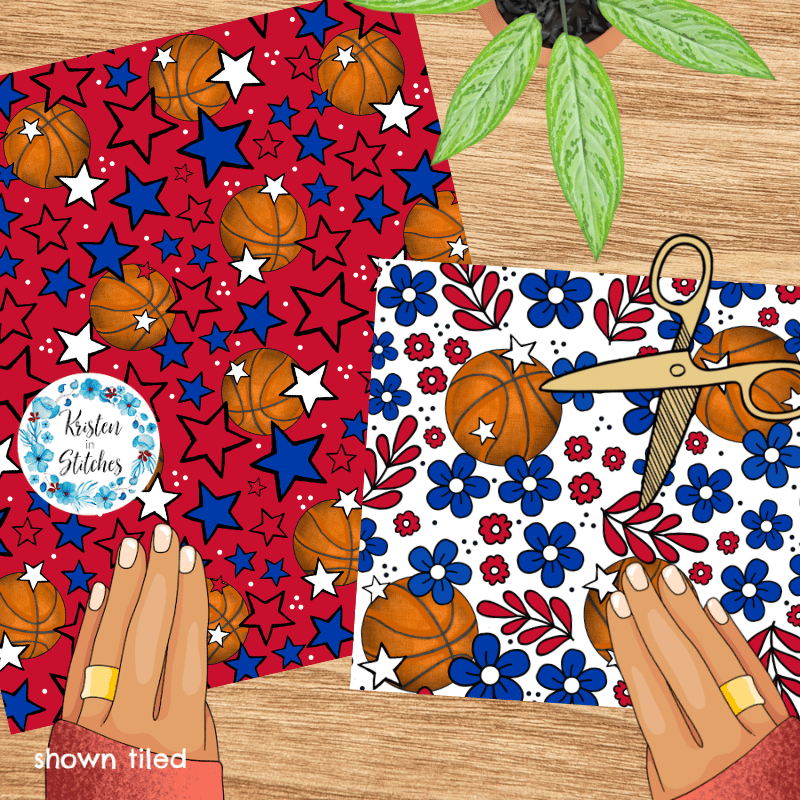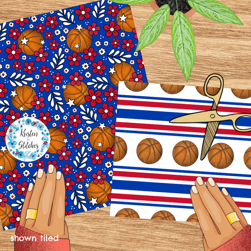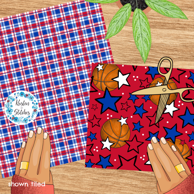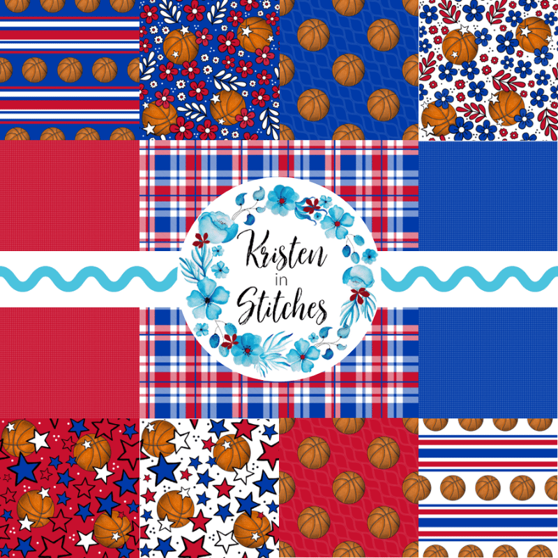 A mix and match set of basketball patterns in Detroit Pistons colors, red and blue.