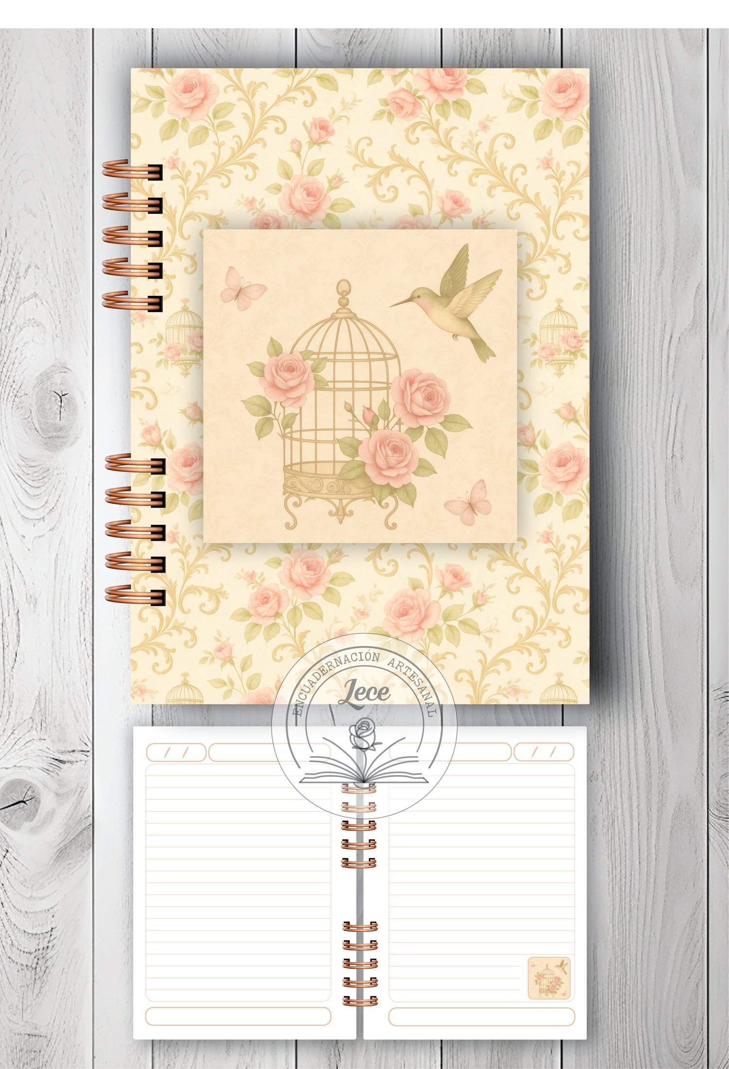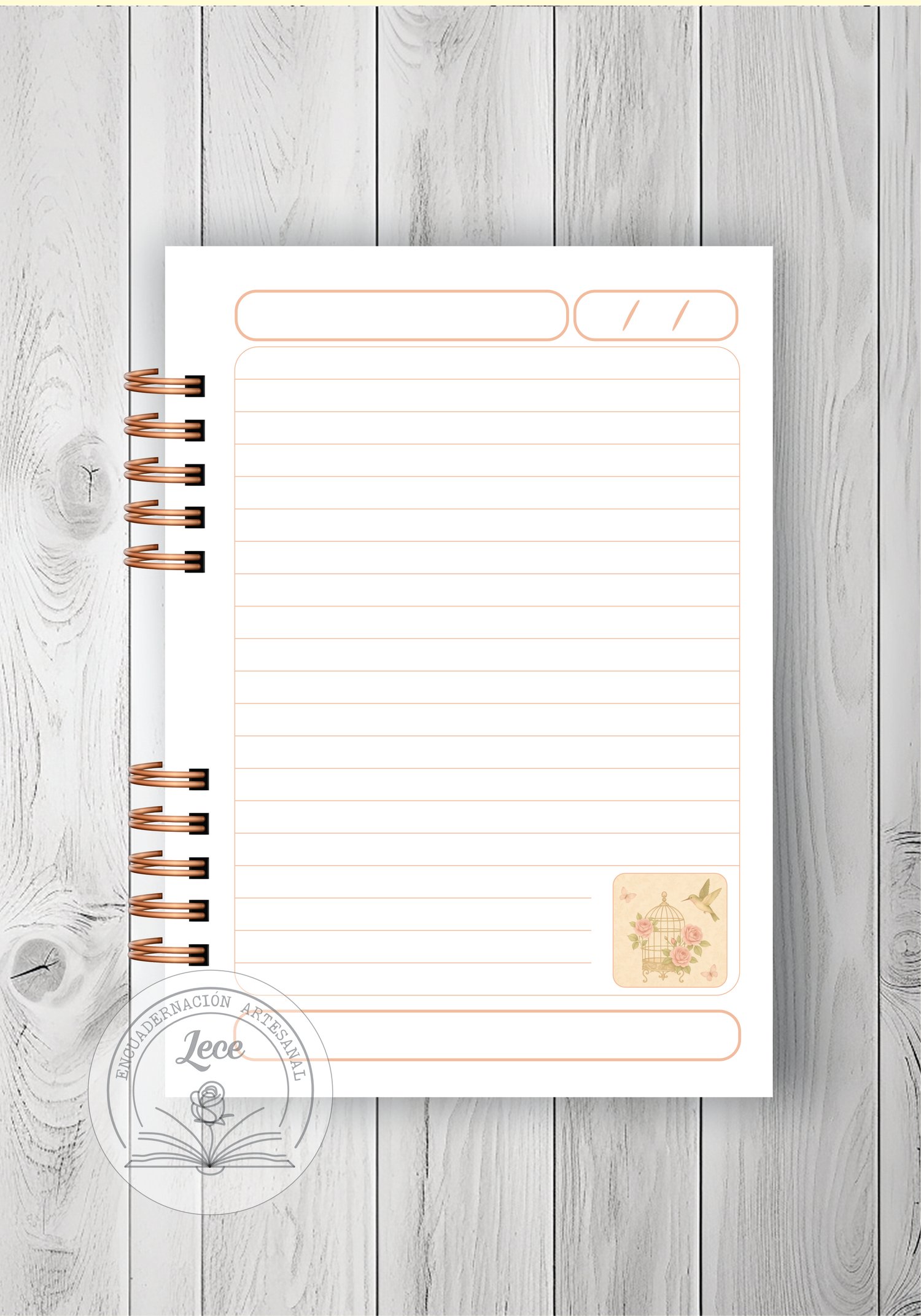 - 1 modelo de interior de 100 hojas rayadas con diseño para imprimir en tamaño A5 para anillado.