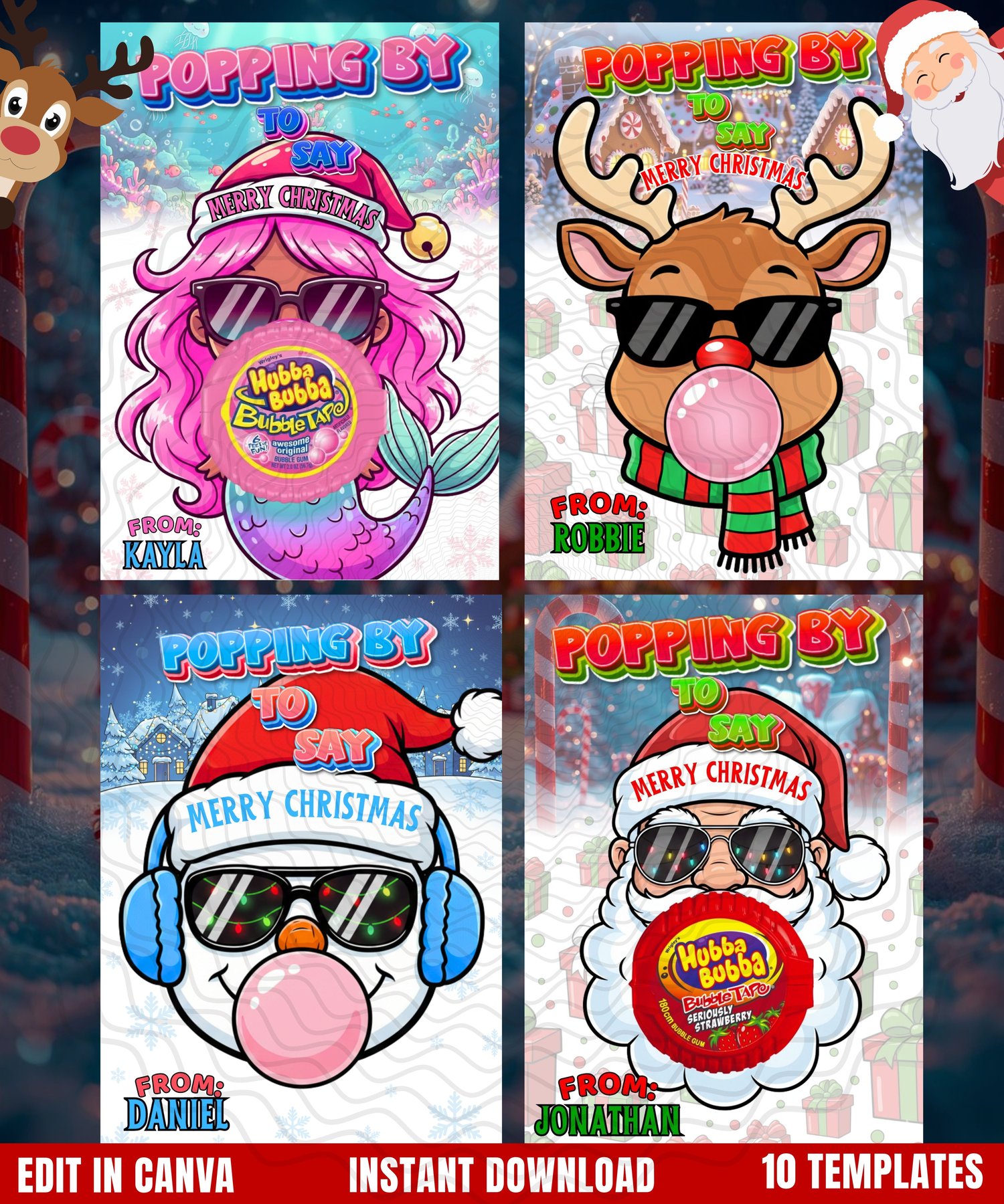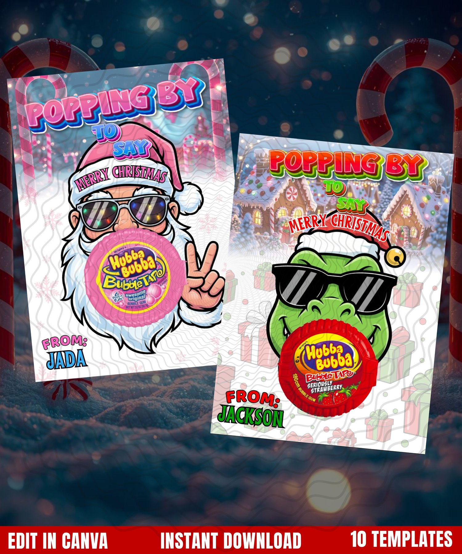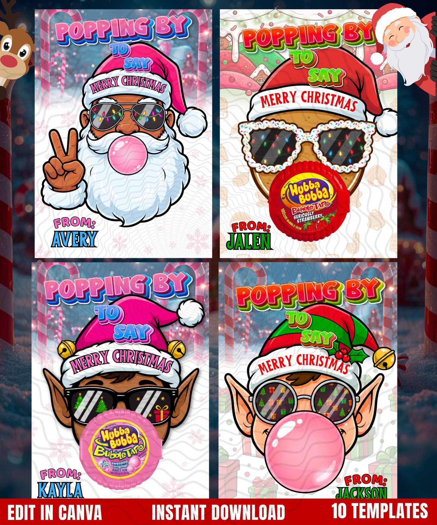 Christmas Bubblegum Tape Treat Card Bundle – 10 Canva Editable Holiday Templates