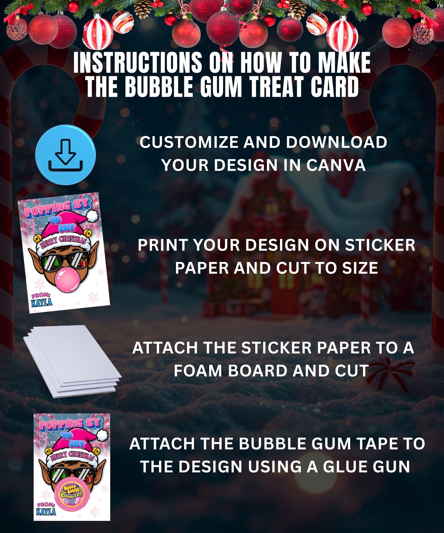 What’s Included: 10 Bubblegum Tape Christmas Treat Card Canva Templates (5x7 inches, can be resized in Canva)