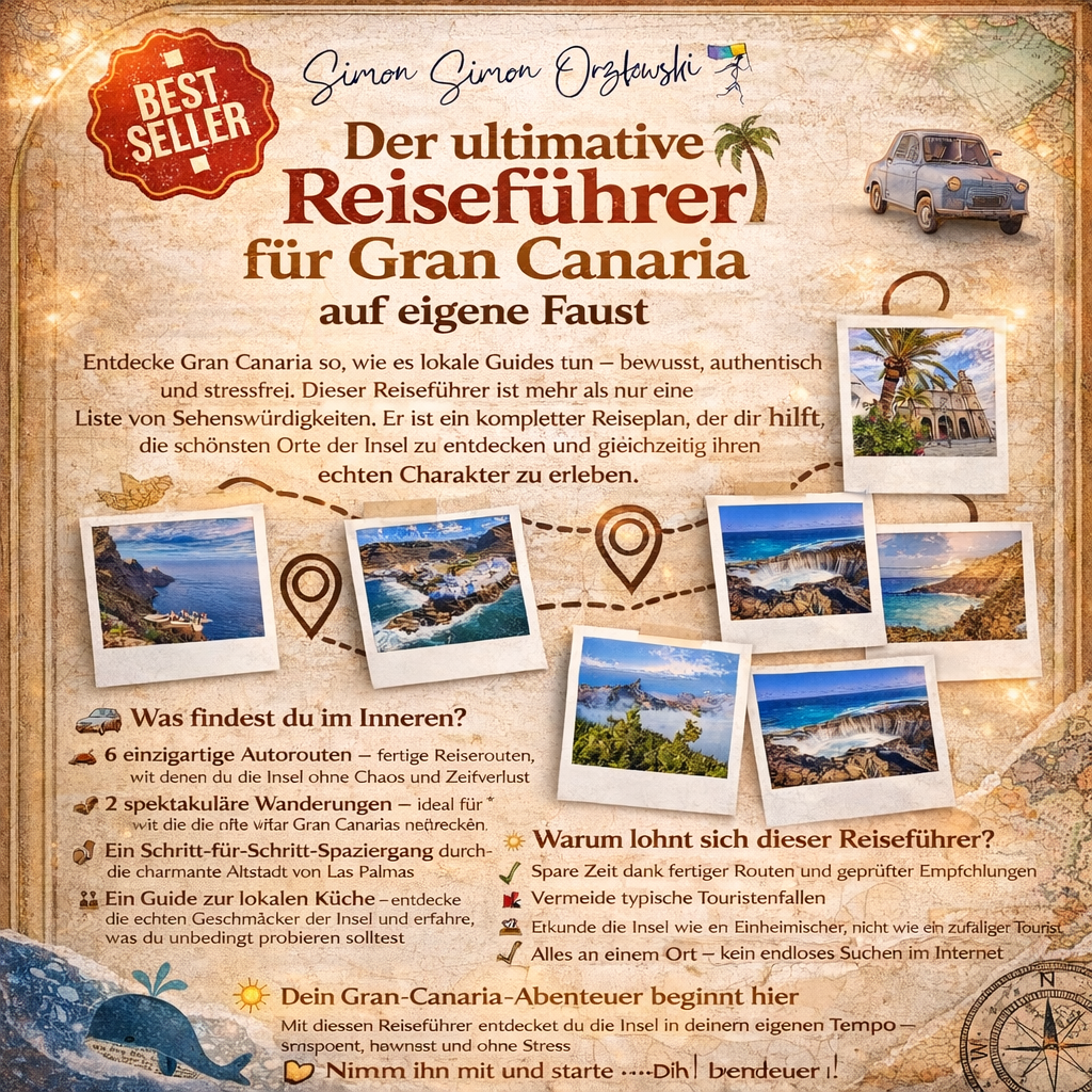 Entdecke Gran Canaria so, wie es lokale Guides tun – bewusst, authentisch und stressfrei. Dieser Reiseführer ist mehr als nur eine Liste von Sehenswürdigkeiten. Er ist ein kompletter Reiseplan, der dir hilft, die schönsten Orte der Insel zu entdecken und gleichzeitig ihren echten Charakter zu erleben.