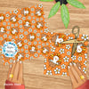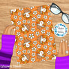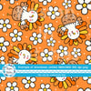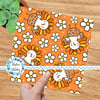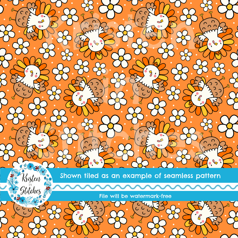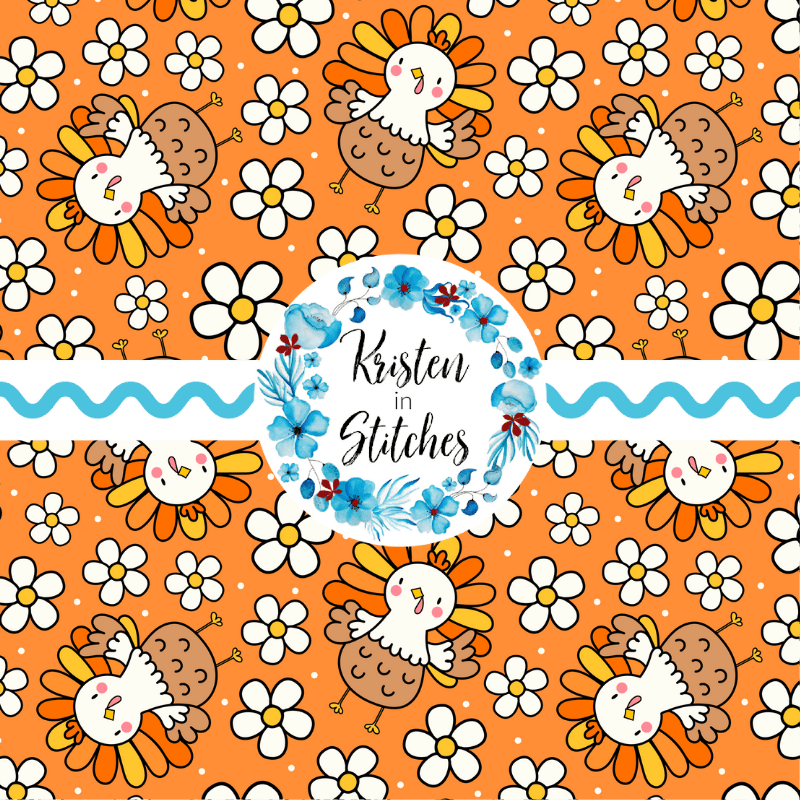 Sweet little turkeys and daisy flowers on orange.