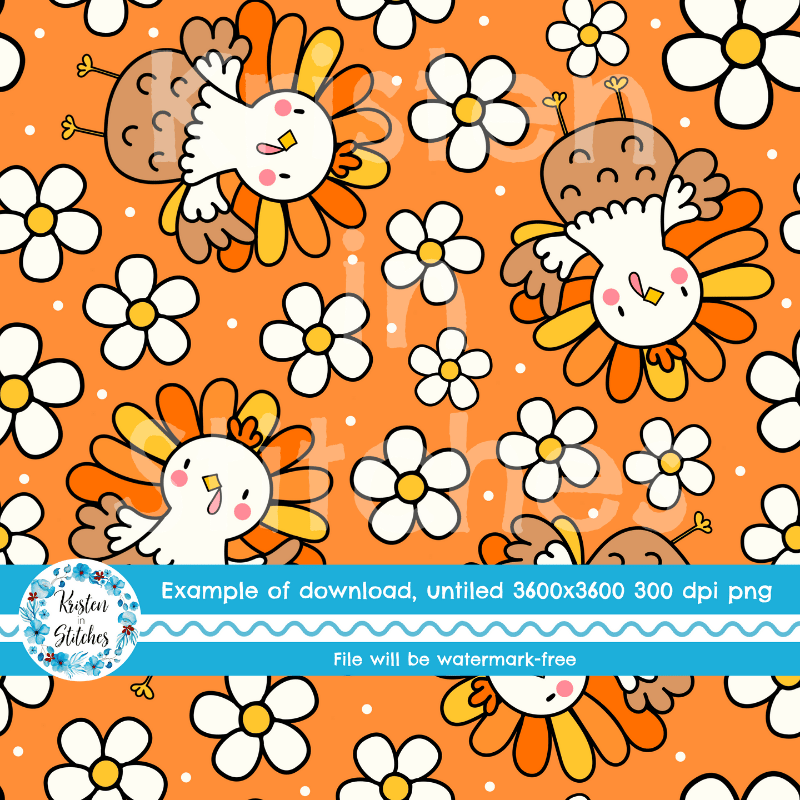 Sweet Thanksgiving Turkeys and Daisy Flowers Seamless Pattern