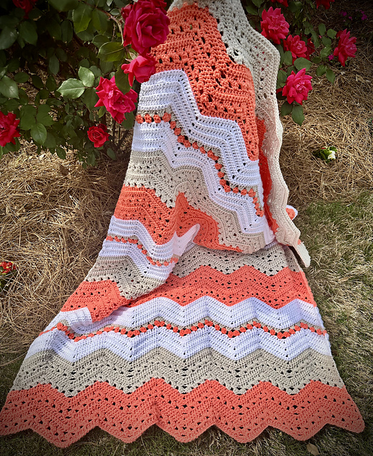 The Golden Meadow Chevron Blanket crochet pattern is a fun and beautiful project that blends a classic granny ripple, wave, and zigzag design with a modern chevron twist. This cozy throw drapes wonderfully and works up easily, making it a great choice for intermediate crocheters.