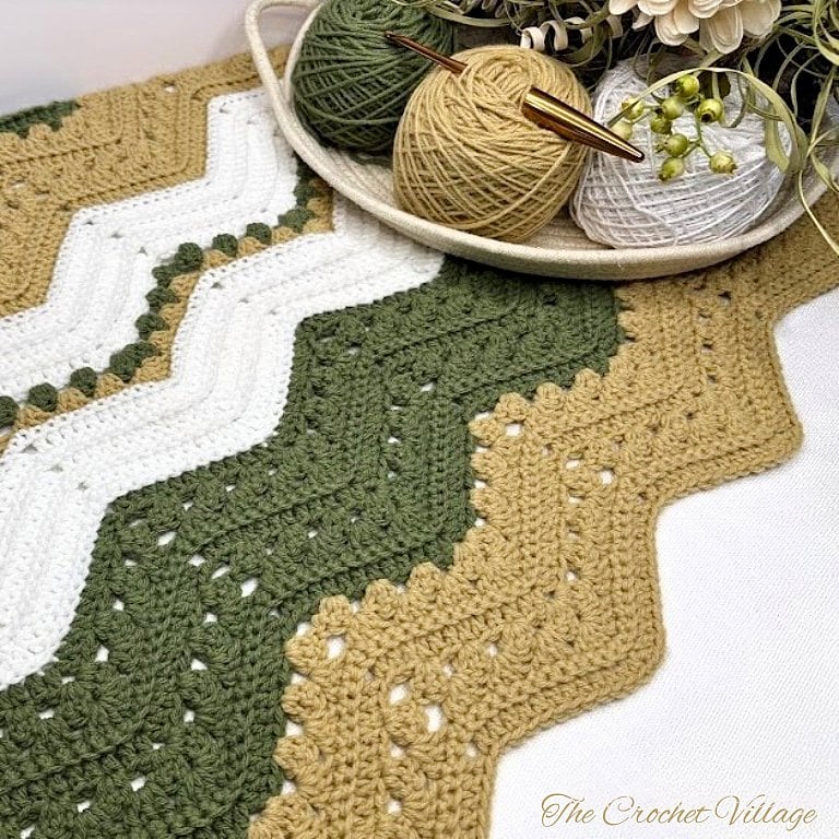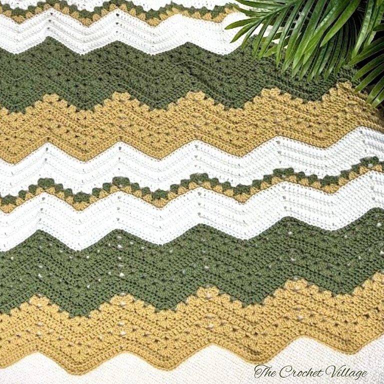 ✨Golden Meadow Crochet Blanket Pattern – Granny Chevron Ripple Afghan (PDF Download)