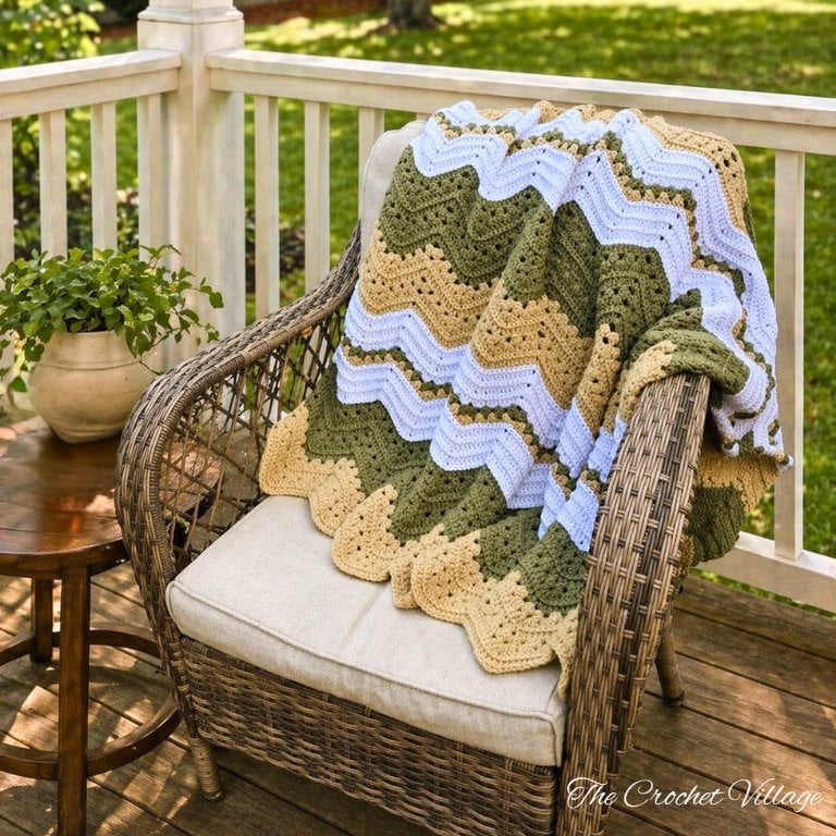 Create a timeless, cozy piece for your home with the Golden Meadow Crochet Blanket Pattern—a beautiful blend of classic granny ripple stitches and the iconic chevron zigzag design. This crochet chevron blanket pattern PDF works up into a soft, eye-catching throw with a gorgeous drape, perfect for home decor or heartfelt handmade gifts.