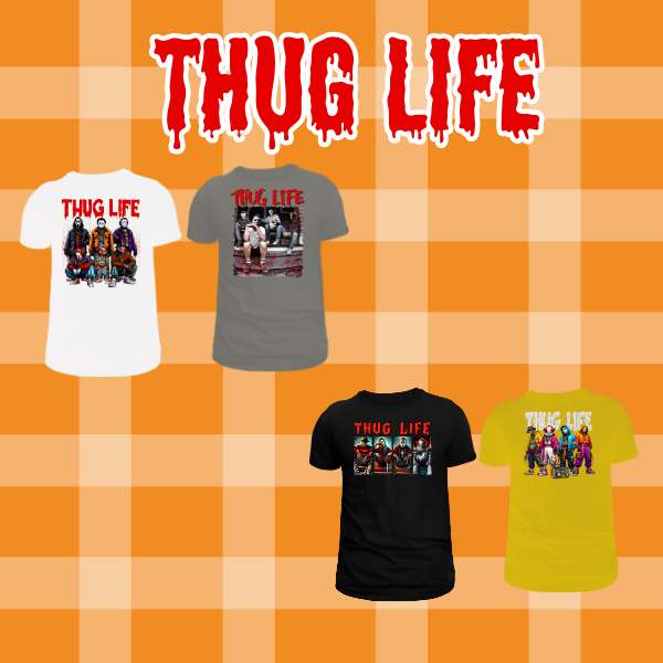 ✨ Take your style to the next level with our “Thug Life” shirt — now with a horror-themed twist! Blending streetwear edge with creepy-cool characters, this bold design is perfect for horror fans who still keep it thug.