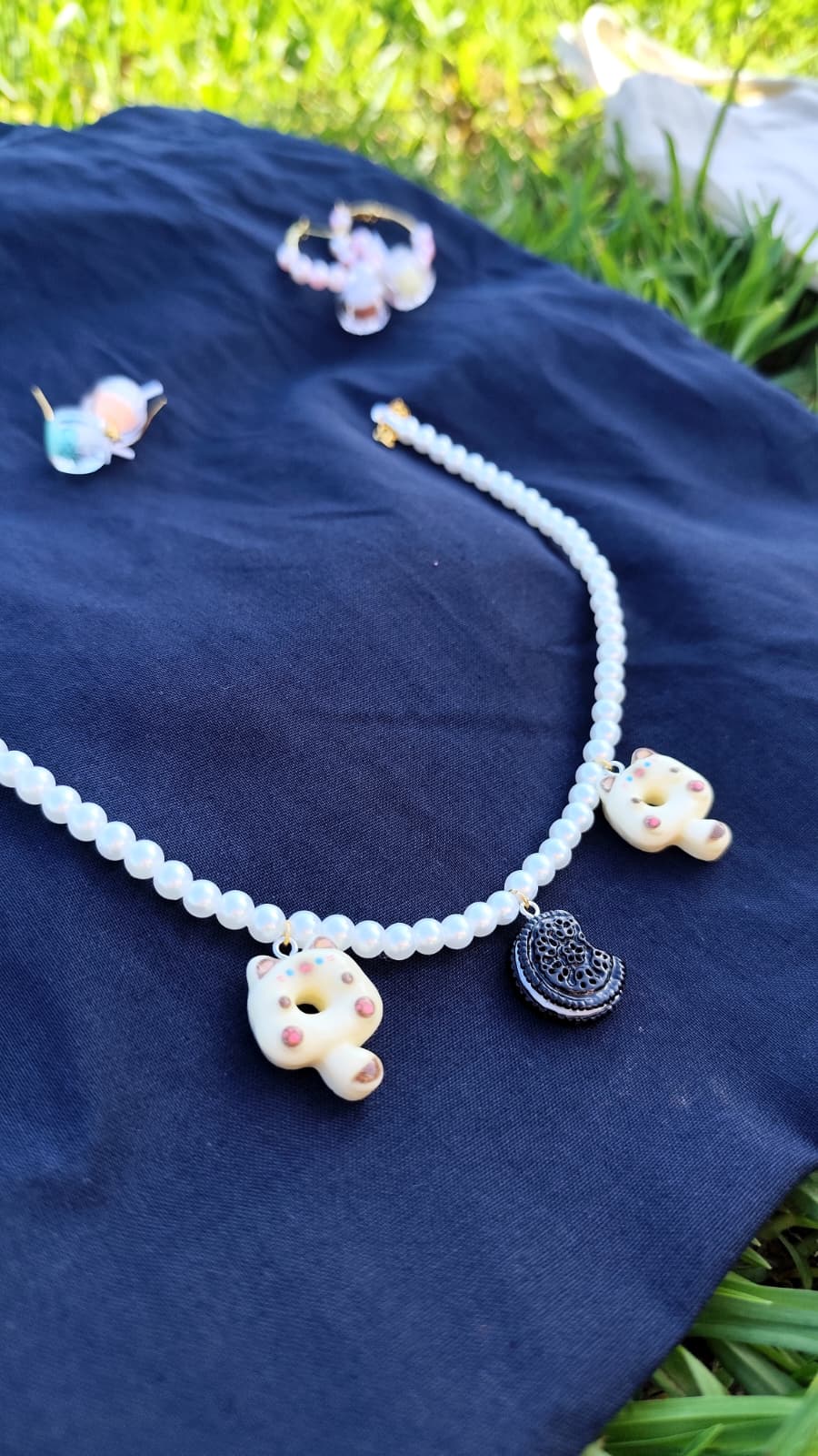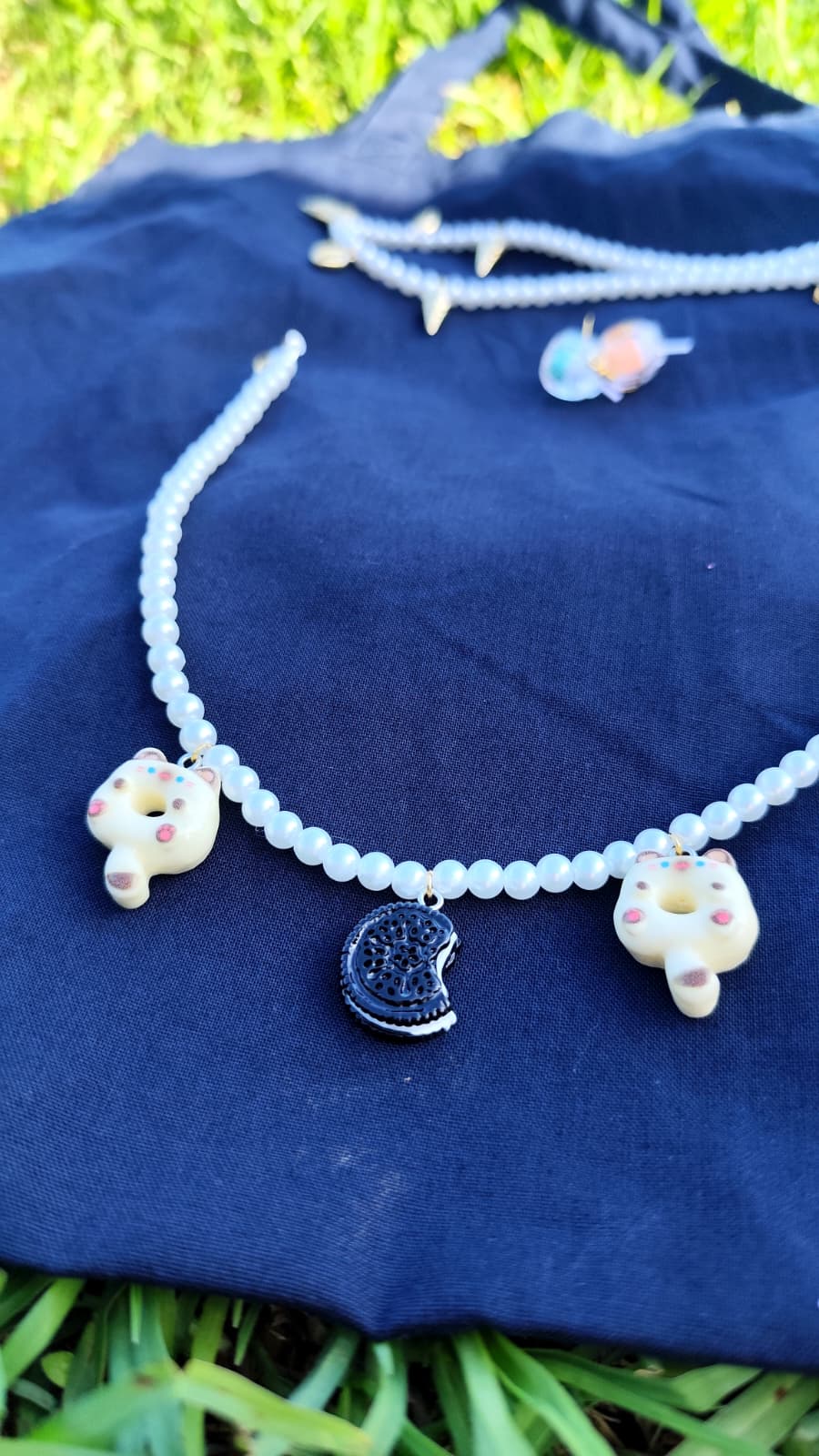 Este collar de oreo y michis en forma de donut es pura fantasía hecha accesorio. Combina un delicioso diseño inspirado en una galleta oreo con adorables caritas de gatito que le dan un toque súper gracioso y único. El colgante tiene un estilo divertido y llamativo, perfecto para quienes aman lo cute, lo original y los detalles que destacan sin esfuerzo.