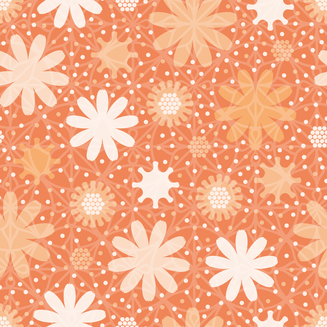 Scotch Marigold abstract vector repeat pattern. Orange floral and geometric illustration background.