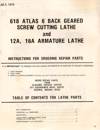 Atlas 6 Inch No. 618 Lathe Manual Instructions & Parts