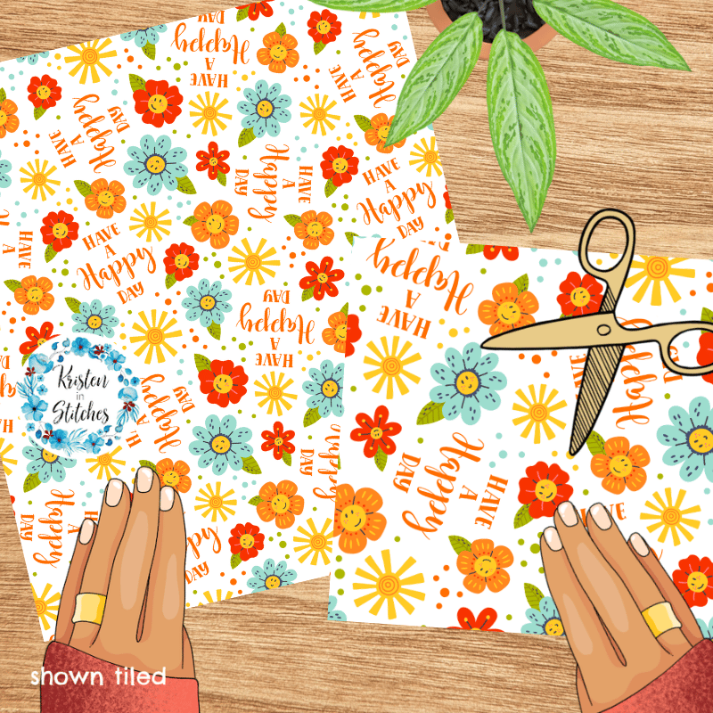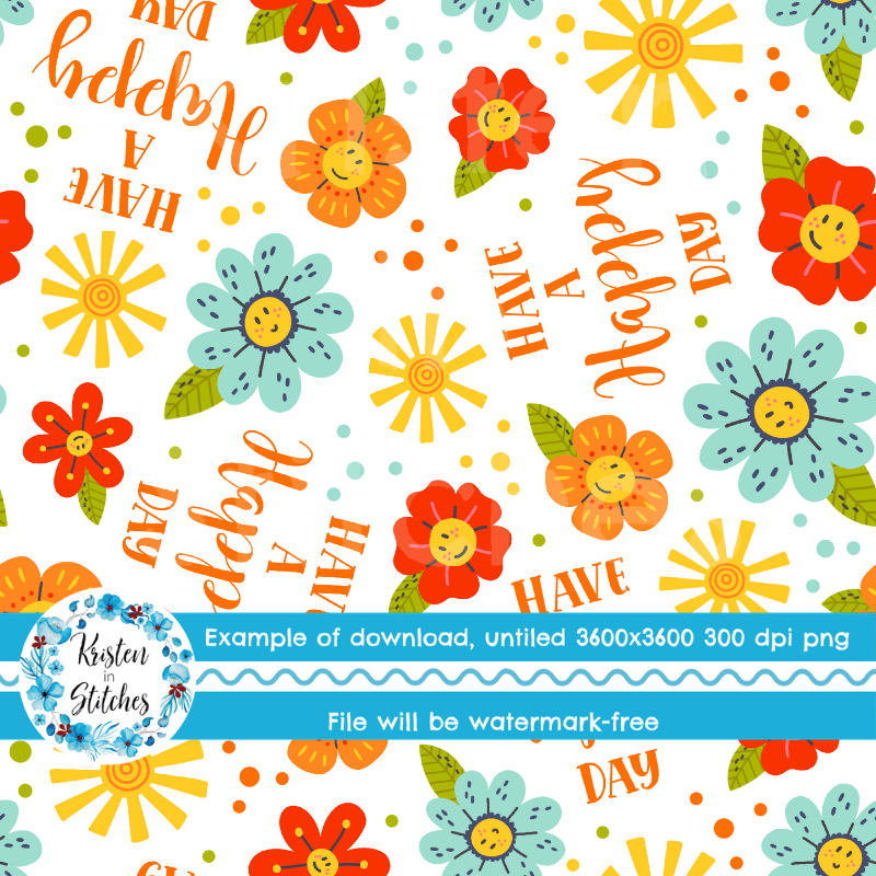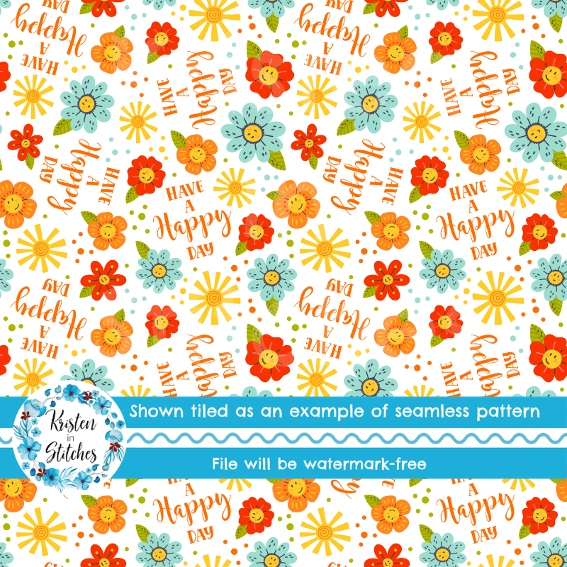 Have a Happy Day! Flowers and Sunshine Seamless Pattern