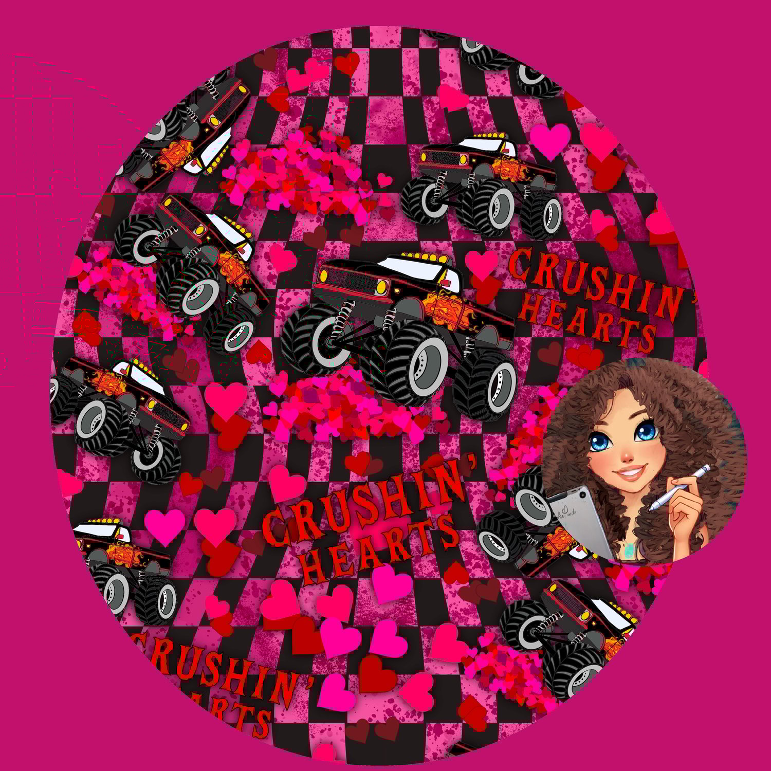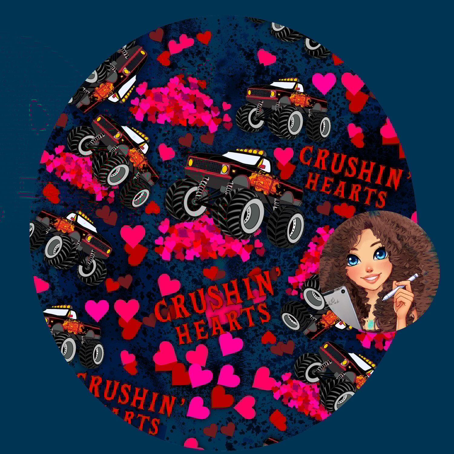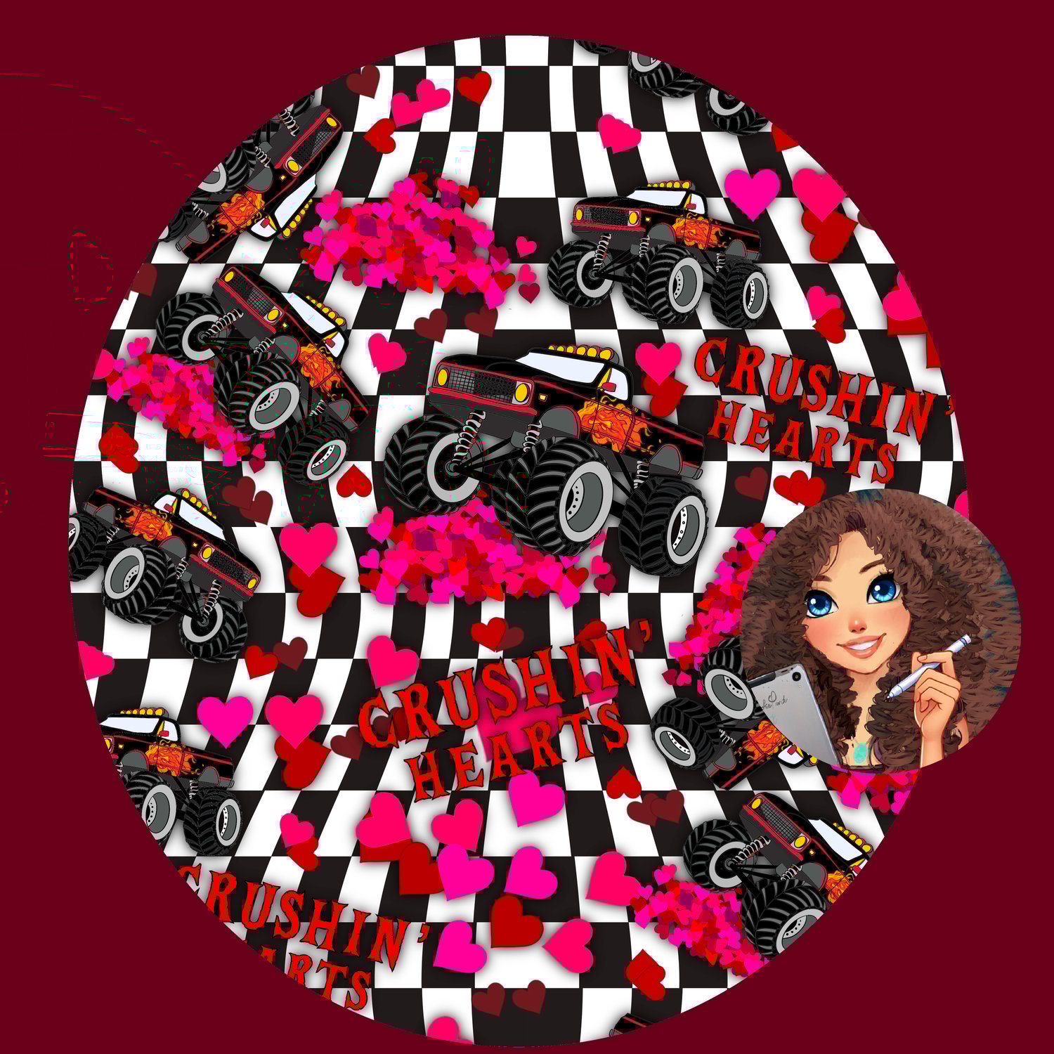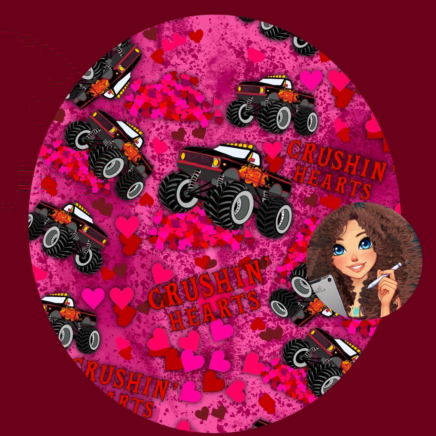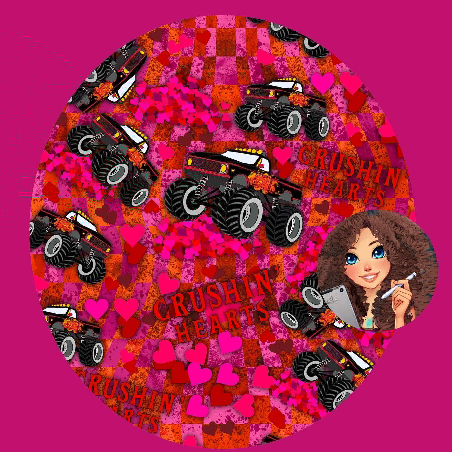 Crushin hearts Monster Truck Valentine Seamless Bundle