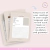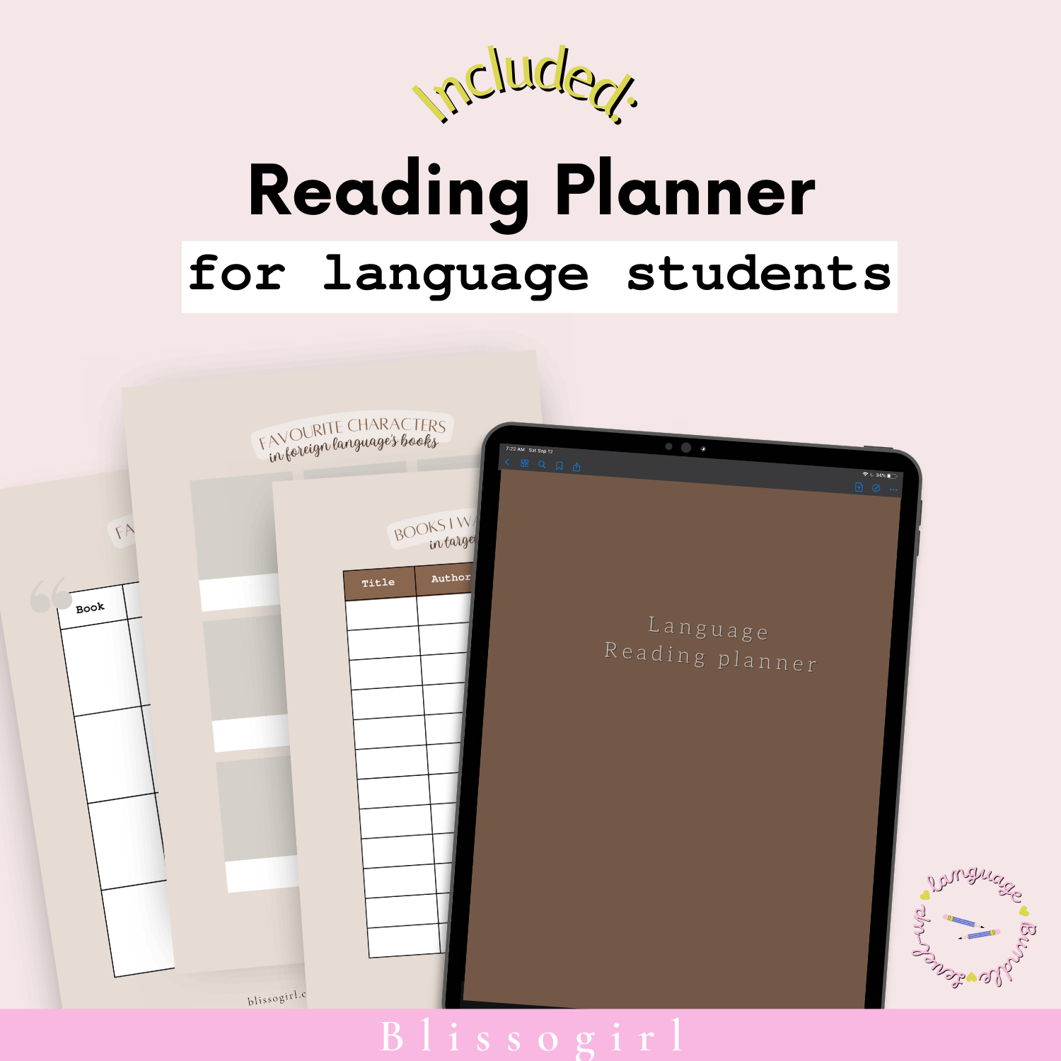 📑💻 Language Reading Planner: This planner will be useful for two things: on one side, you'll be able to keep track of the readings you do in your target language (wether they're books, short stories, newspapers, etc). On the other side, you'll be able to improve your writing skills in the "Write your review" sections.