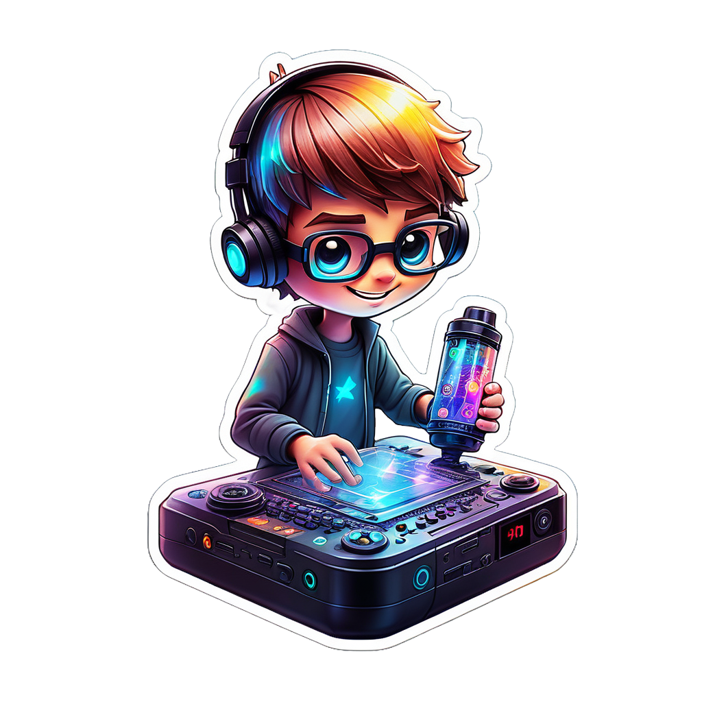 Technology Gadget Smart Techie Guy Hello Everyone ! Hola Meet MR Techie Tech a futuristic-looking cool boy in a holographic DIY sticker form. Tired of your daily life with hectic work ? Keep me in your back of your smartphone, laptop, tablet to solve your current problems in technical way. This sticker would appeal to those who enjoy playful, tech-themed artwork, and it could be a charming addition to laptops, notebooks, or any other personal items for fans of music, DJ culture, or futuristic designs.