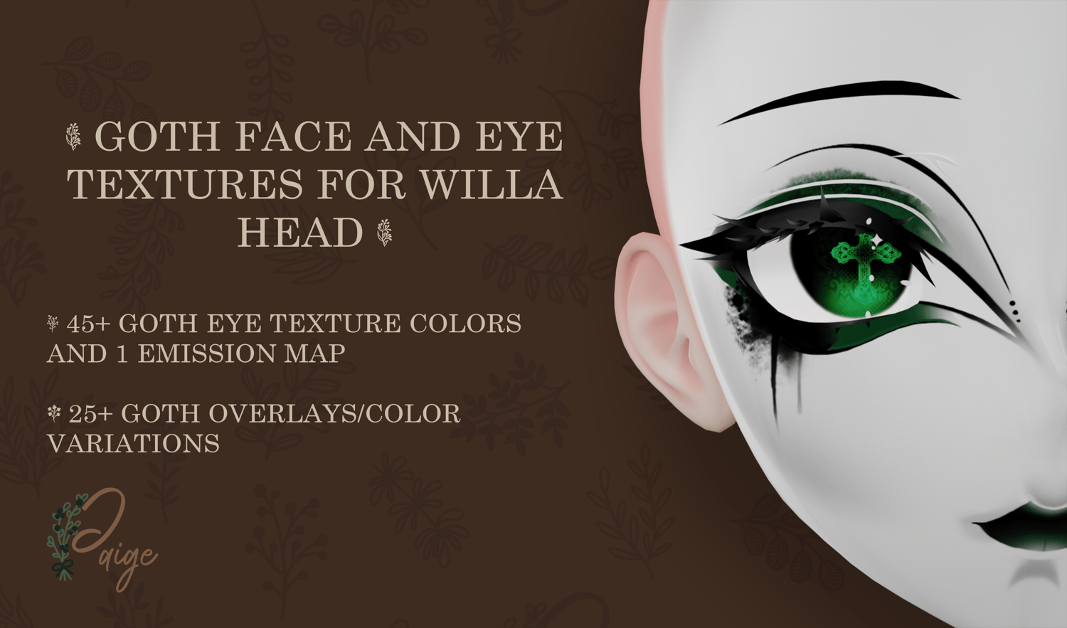 Bring your dark goth aesthetic to life with this texture pack designed for the Willa Head.