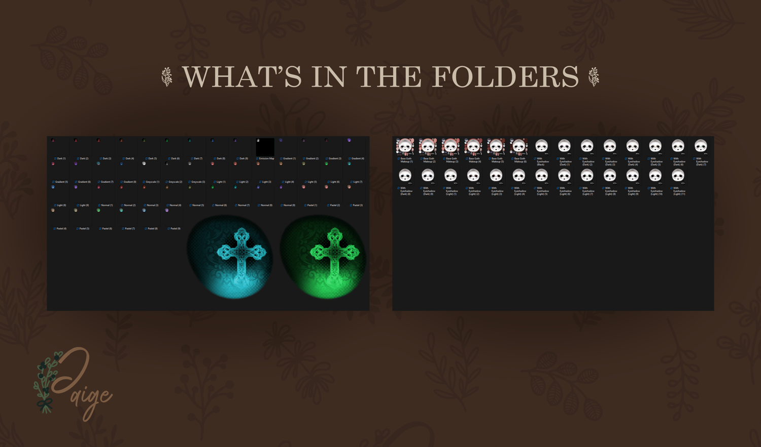 - 25+ goth face textures (color, overlay, transparent) in light & dark tones (not just black)