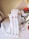 The Sugar Cubes scarf is just like it's hat - super sweet with bits of fruit embedded all over! We just love the teeny-tiny fruit pieces, it's like finding treasure in a huge, sugary, cotton candy wrap 😅 Swipe to see tester versions!Â