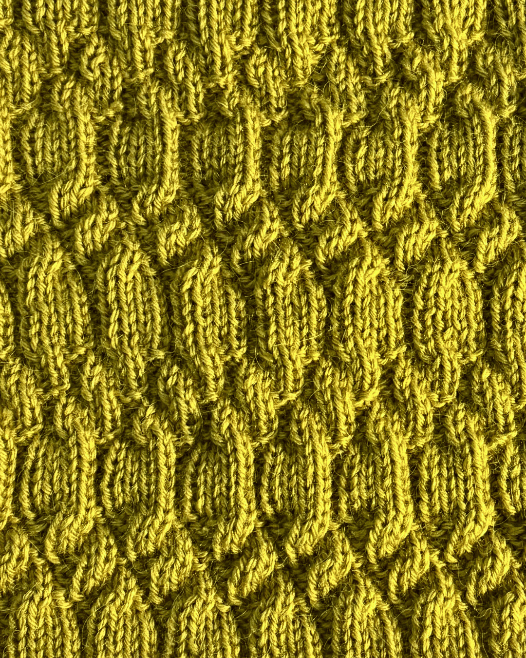 Knitted in the round, the simple knit/purl pattern repeats throughout. But just as with life, small changes at the start of some rounds sees the pattern go in different directions creating this wonderful textural effect.