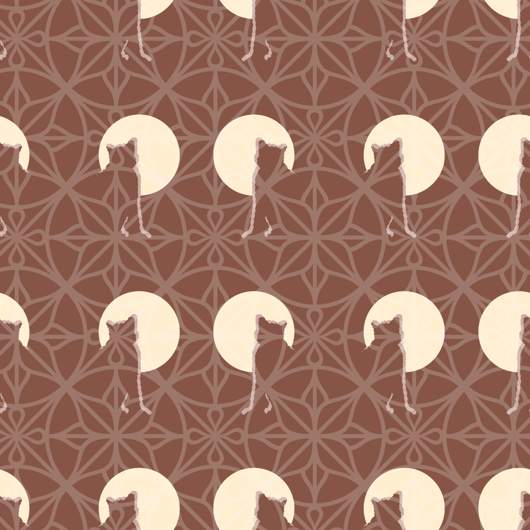 Moon and cat seamless pattern background. Animal silhouette vector wallpaper illustration.