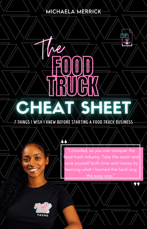 The Food Truck Cheat Sheet: 7 Things I wish I Knew Before Starting a Food Truck Business comes from a reliable source. Michaela Merrick conquered the food truck industry in less than a year, and quickly expanded. This guide was curated to provide real insight into what to expect when starting a food truck business. Learn the formula of success from a true industry successor. “I have taken out the hard lessons, and replaced them with my hands on knowledge that was gained while surviving on a food truck during the pandemic.” This guide answers the question everyone has been dying to know….HOW?!