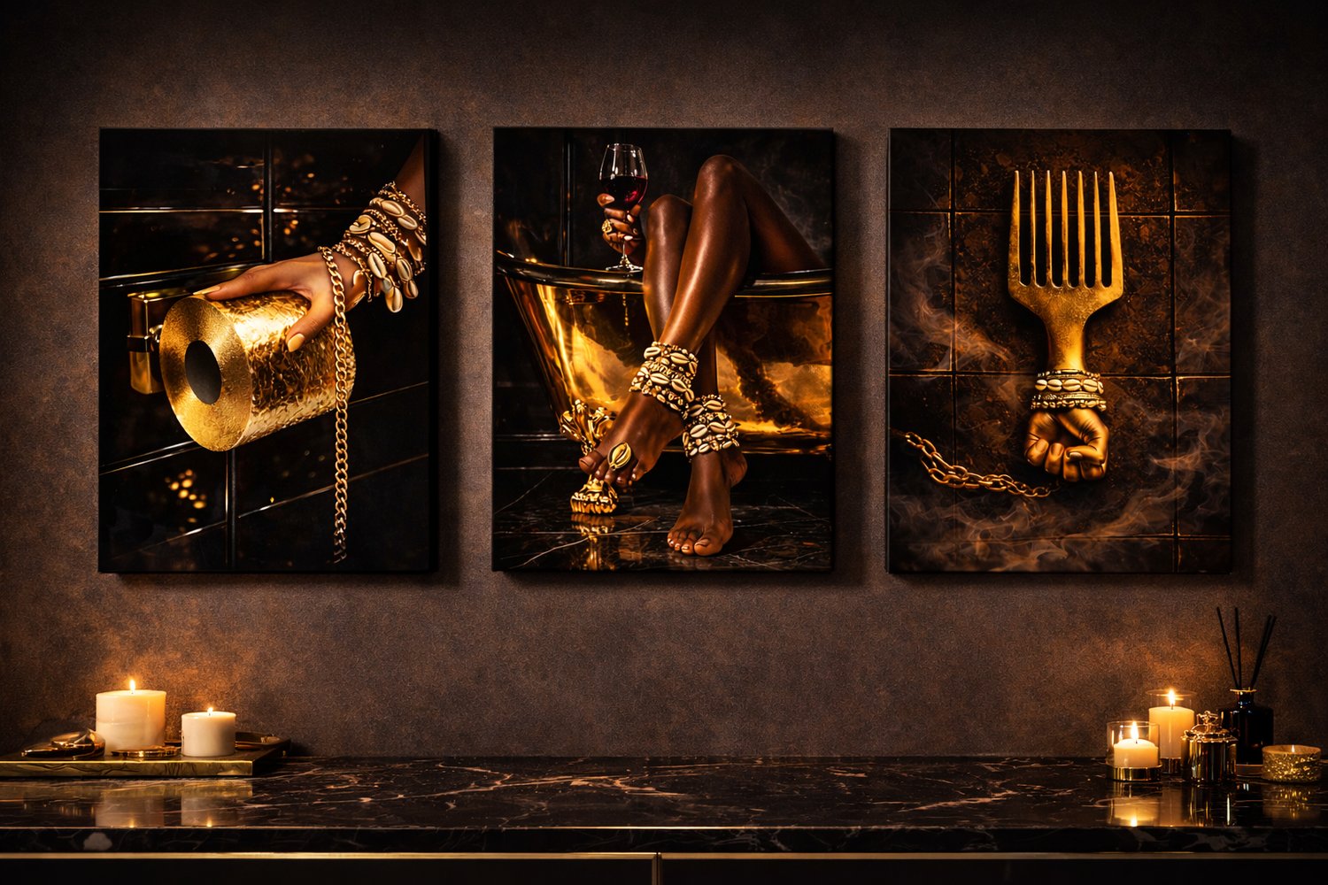 The Gilded Ritual Luxe Canvas Set – 3 Piece Afro-Glam Bathroom Collection