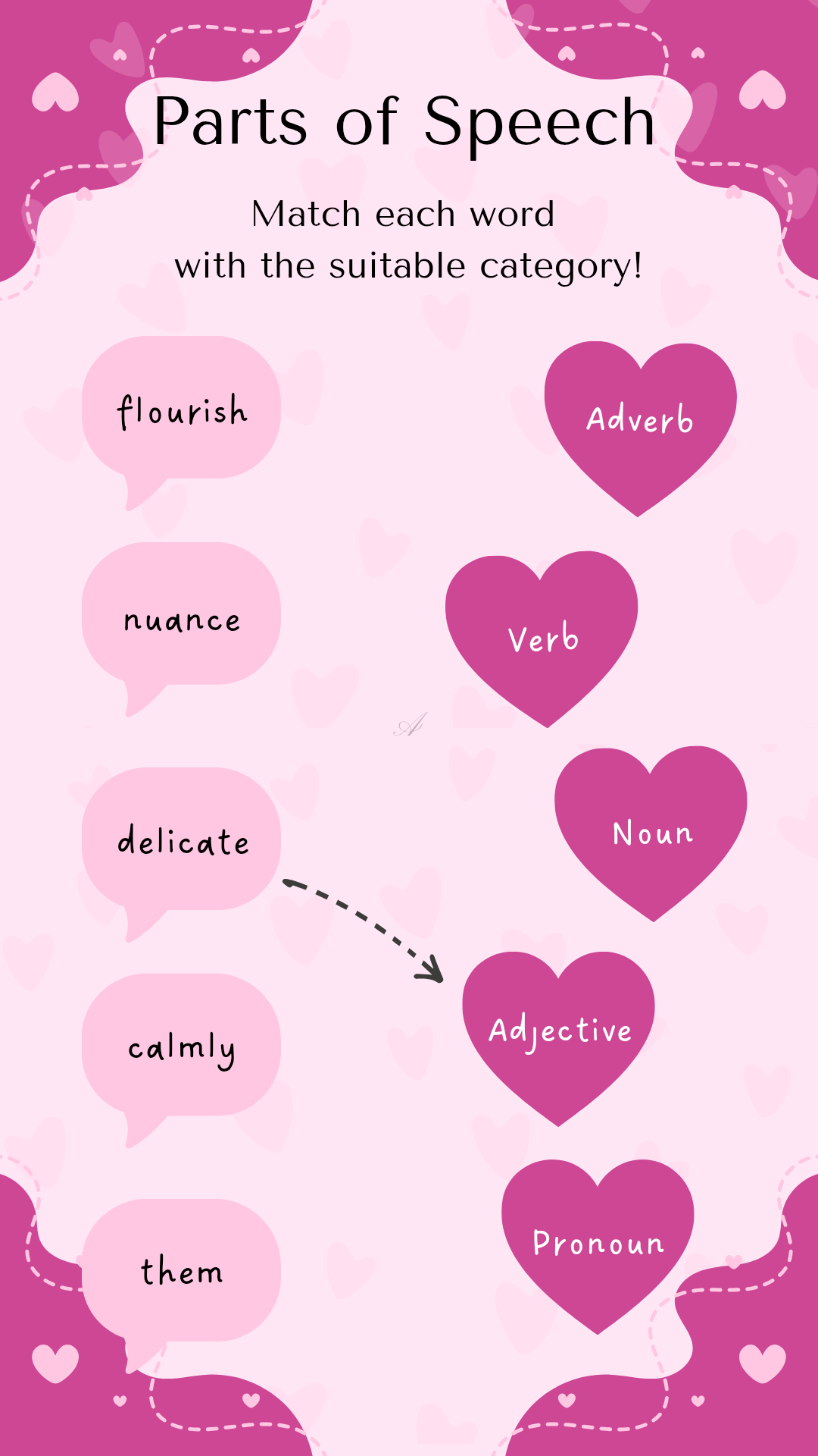 English Worksheet "Parts of Speech" (A) | Pink