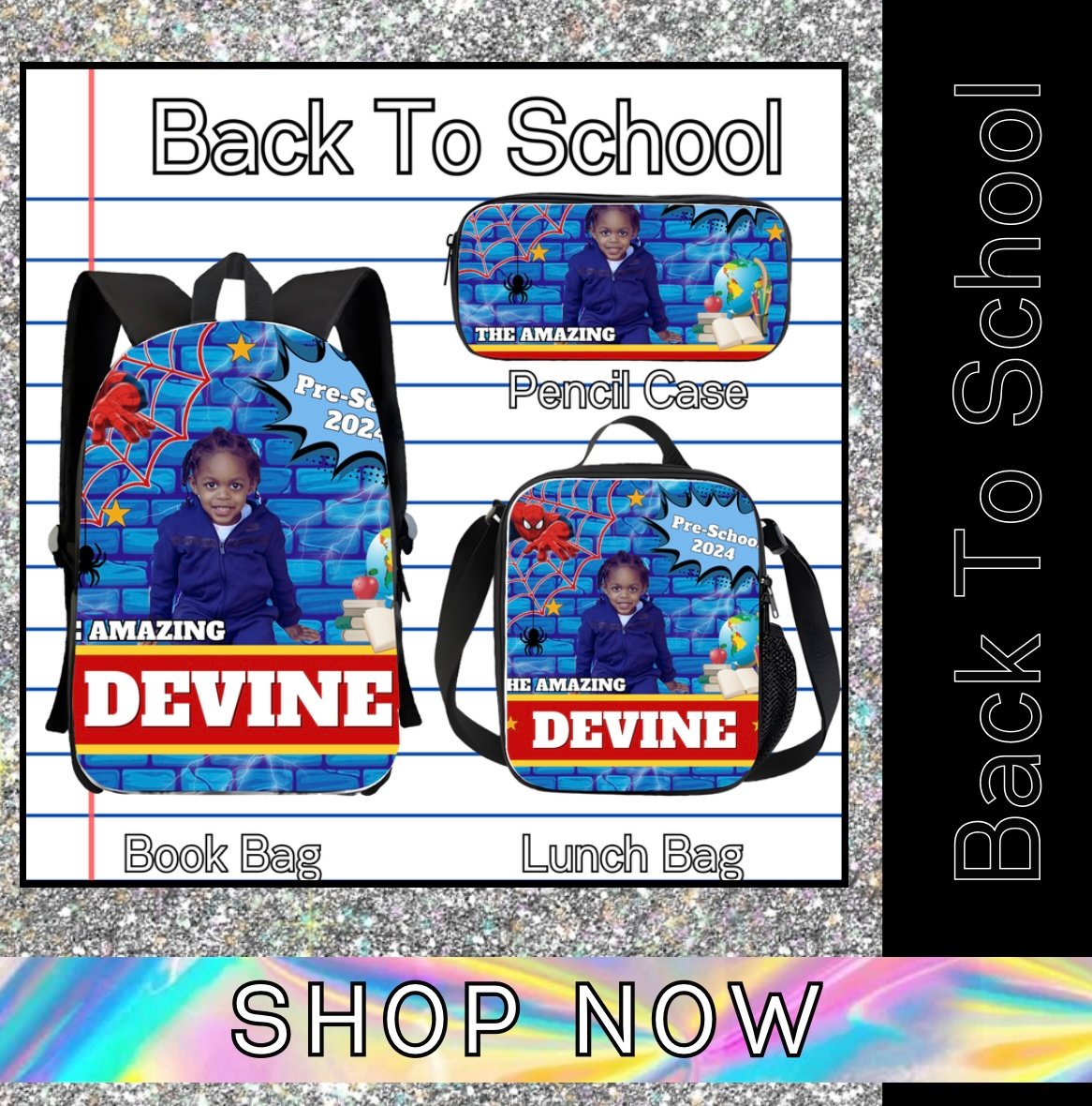 This Backpack Set includes 121 editable digital downloads only! The customizable designs feature beloved characters and popular themes. This set is perfect for students and young learners with its versatility and unique designs. This is a must-have for any back-to-school shopping list, return to school with a unique design customized to match your personality and liking.
