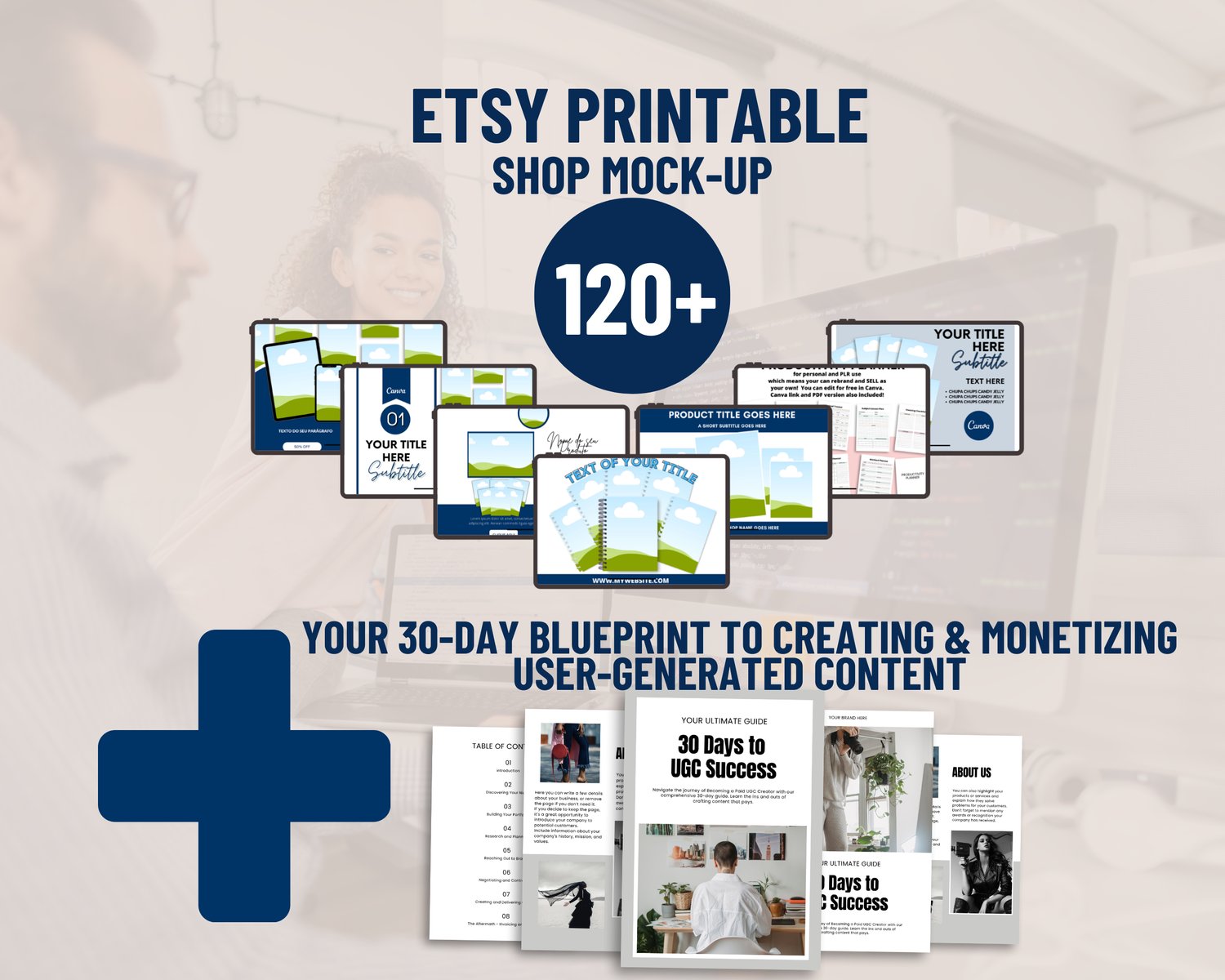 120 Etsy Printable Shop Mockups plus your 30 day UGC and 300 powerful women clips