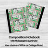 Holographic Laminated Composition Notebook. These make great gifts or to use for journaling or for school. Your choice of either Wide or College Ruled.