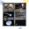 Sun, Mercury, Venus, Earth, Mars, Asteroid Belt, Jupiter, Saturn, Uranus, Neptune, Solar System, planet, asteroid, comet, meteorite, moon, star, satellite, astronaut, and rocket.