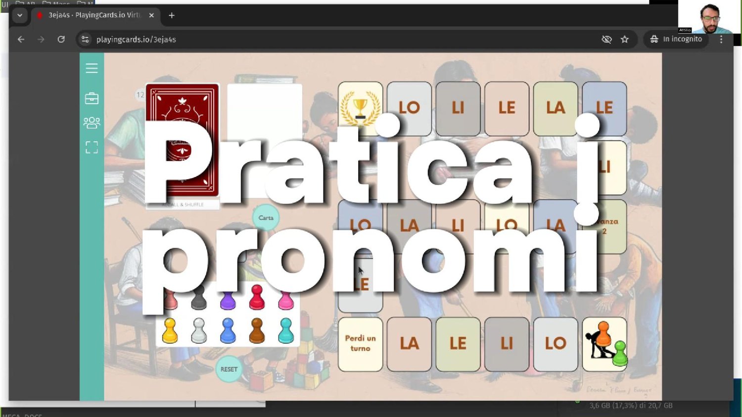3) gioco per praticare con i pronomi indiretti e un mazzo da 32 verbi.