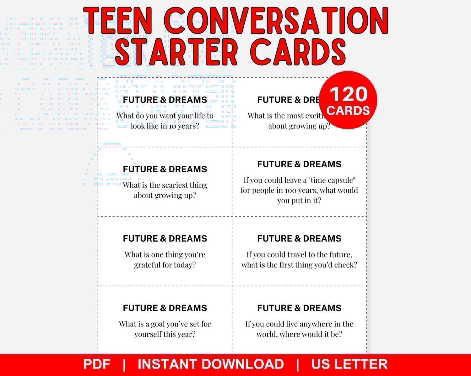 Teen Conversation Starter Cards, Teen Talk Cards, Icebreaker Questions, Get to Know You Game, Family Dinner, Youth Group, Teen Therapy